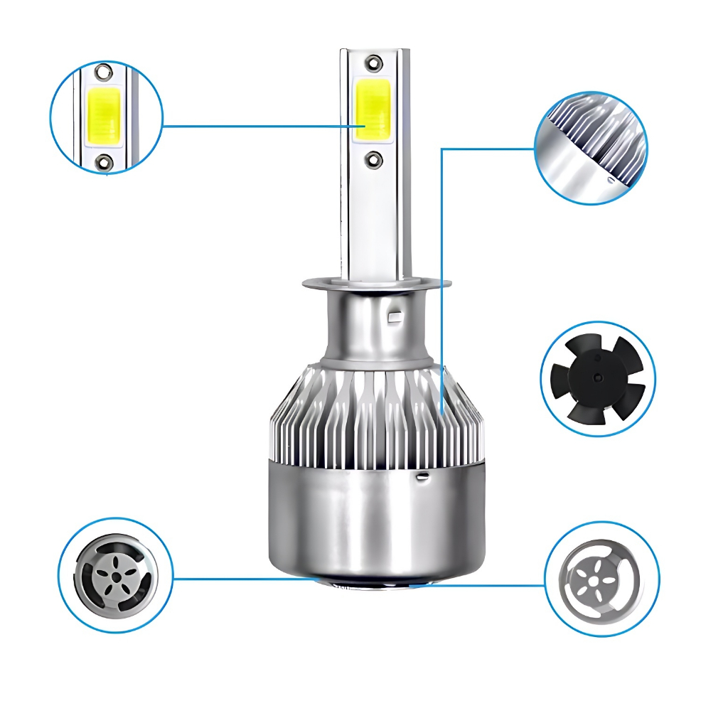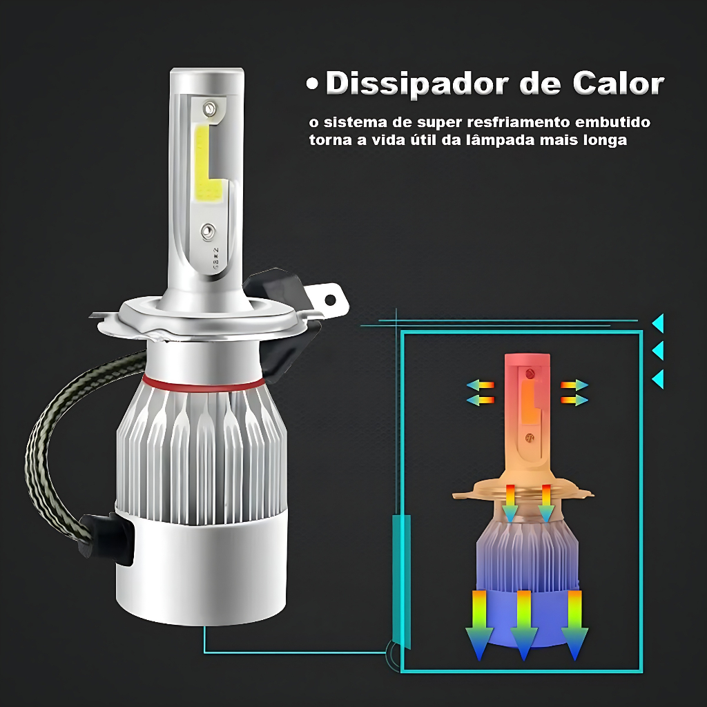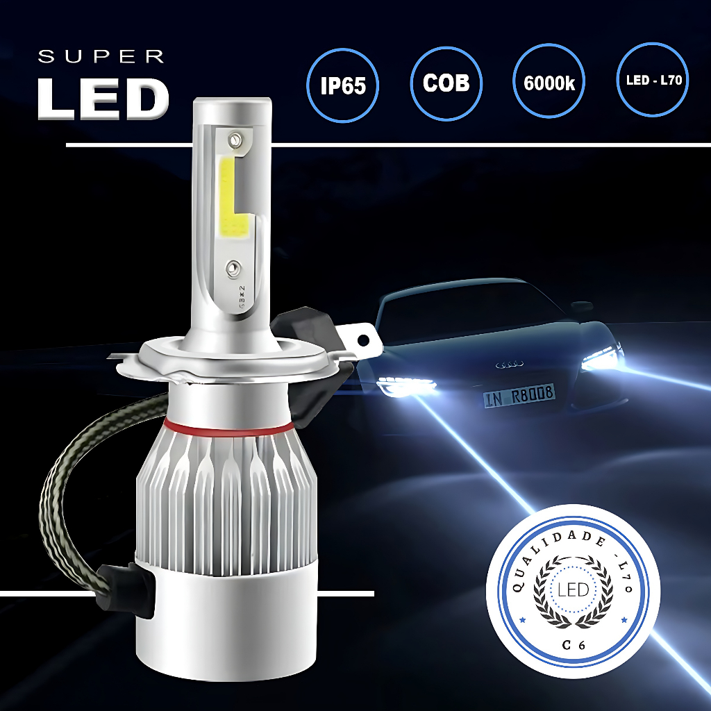 Kit 2 Lâmpadas Farol Milha Super Led Carro Automotivo C6 H1 / H3 / H4 / H7 / H11 7200L Efeito Xenon