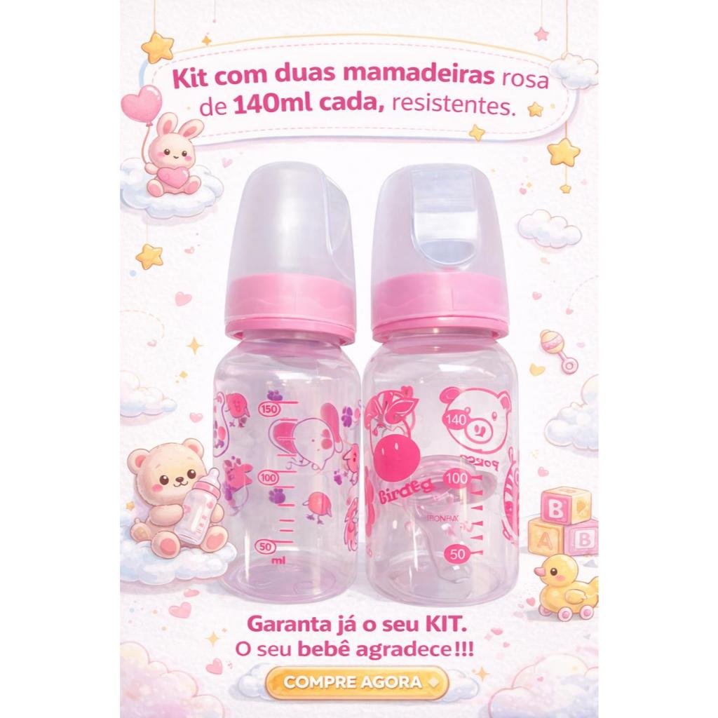 Kit Mamadeira 140ml Rosa 2 Unidades Oferta