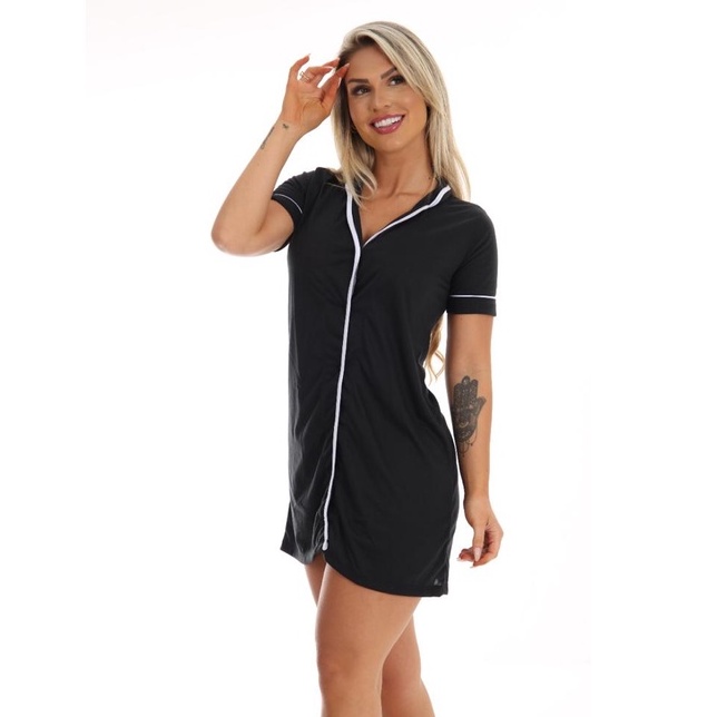 Camisola FB Americana Luxo Aberta Amamentação Blogueira pijama inverno com botões malha pos cirurgica
