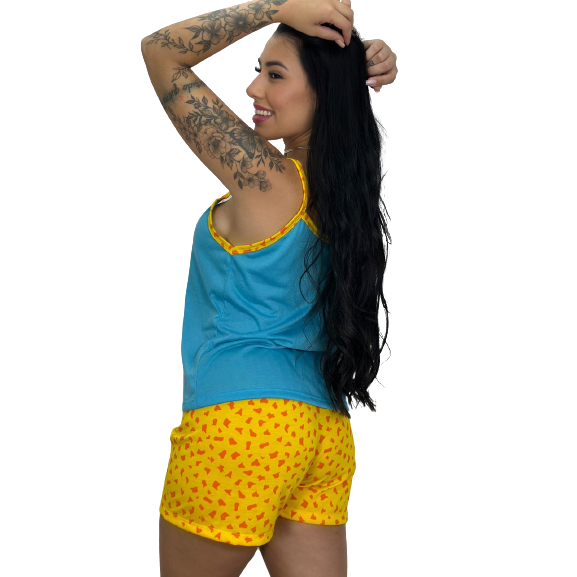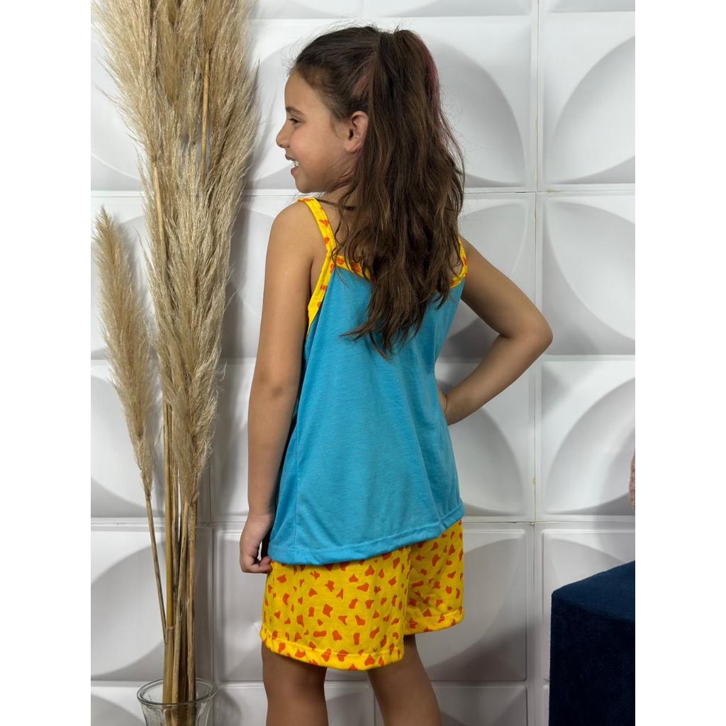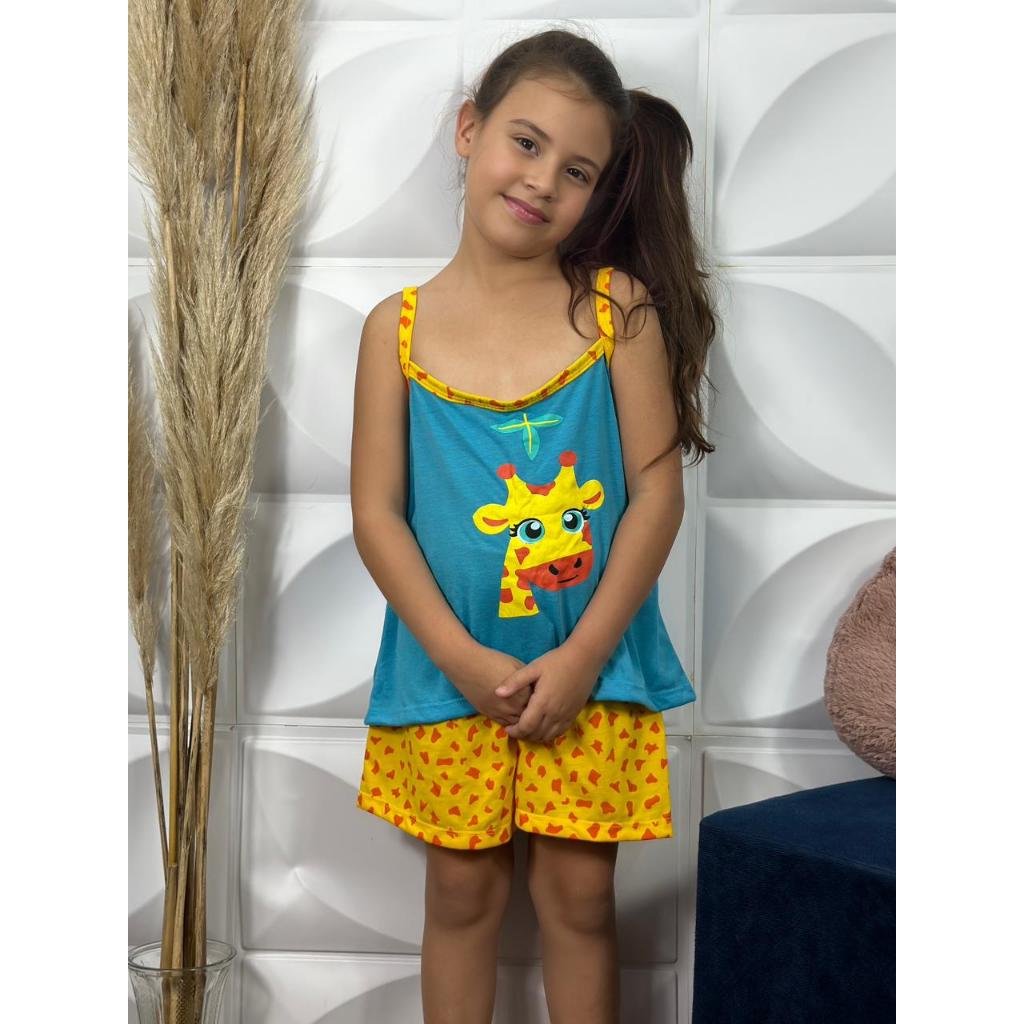 KIT 2 Baby Doll Mãe e Filha Girafinha Malha Confort Pijama Short Doll Verão