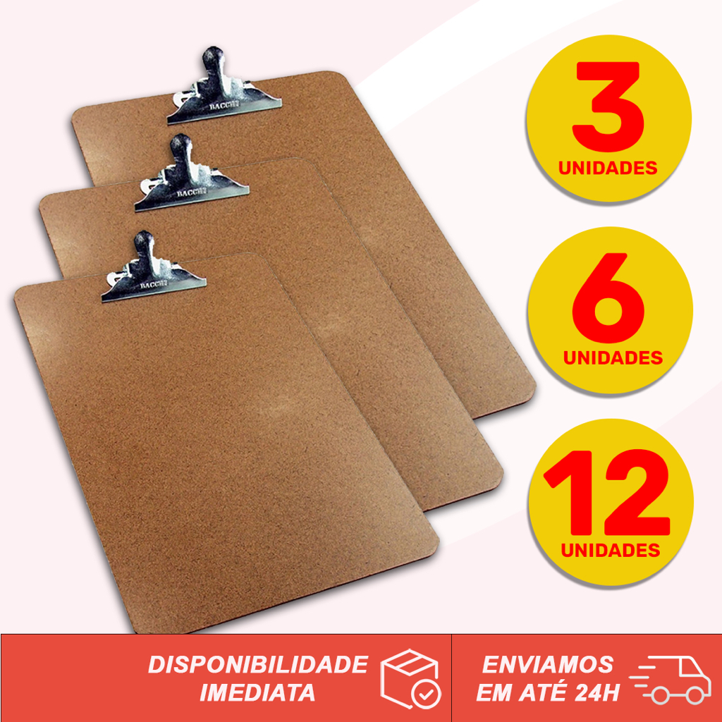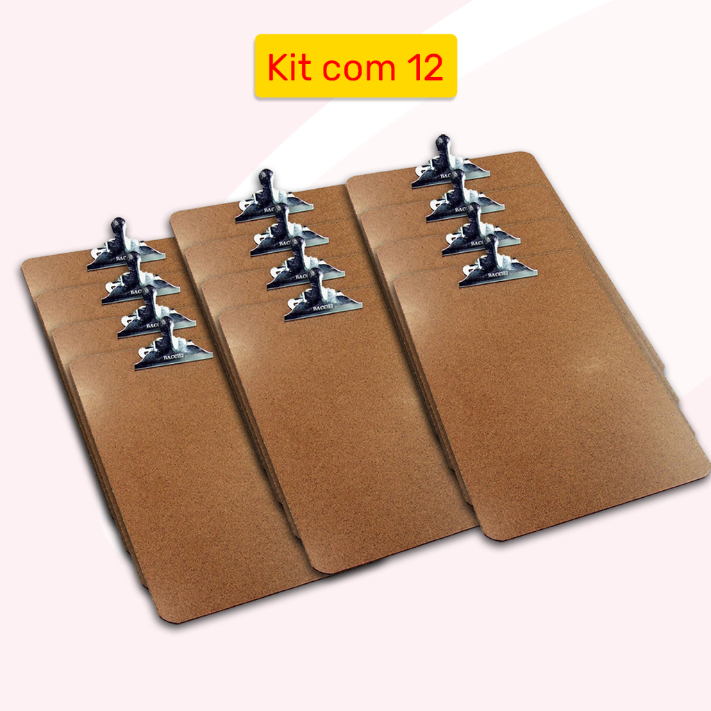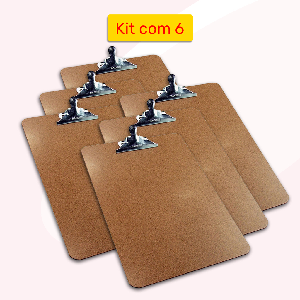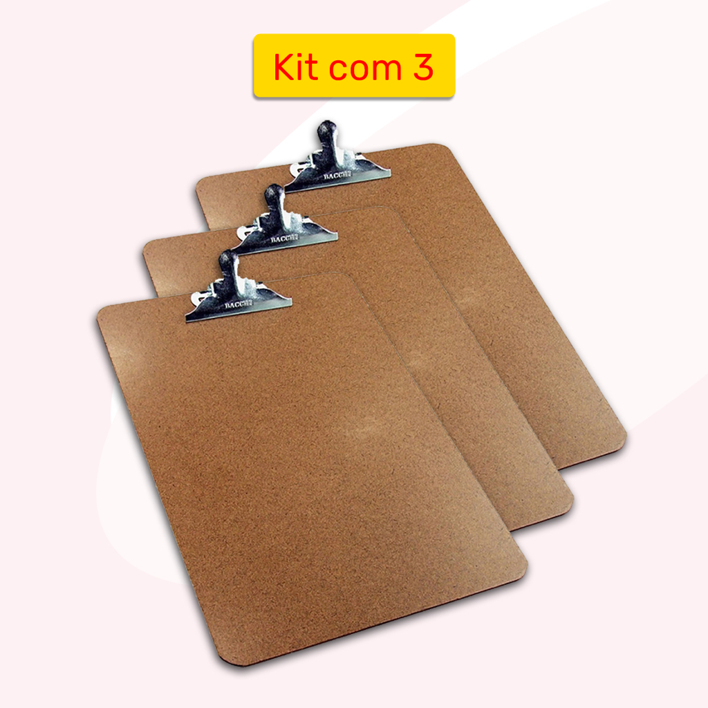 KIT PROMOCIONAL Prancheta de Madeira Eucatex A4 Ofício Com Prendedor de Metal 33cm x 23cm Bacchi