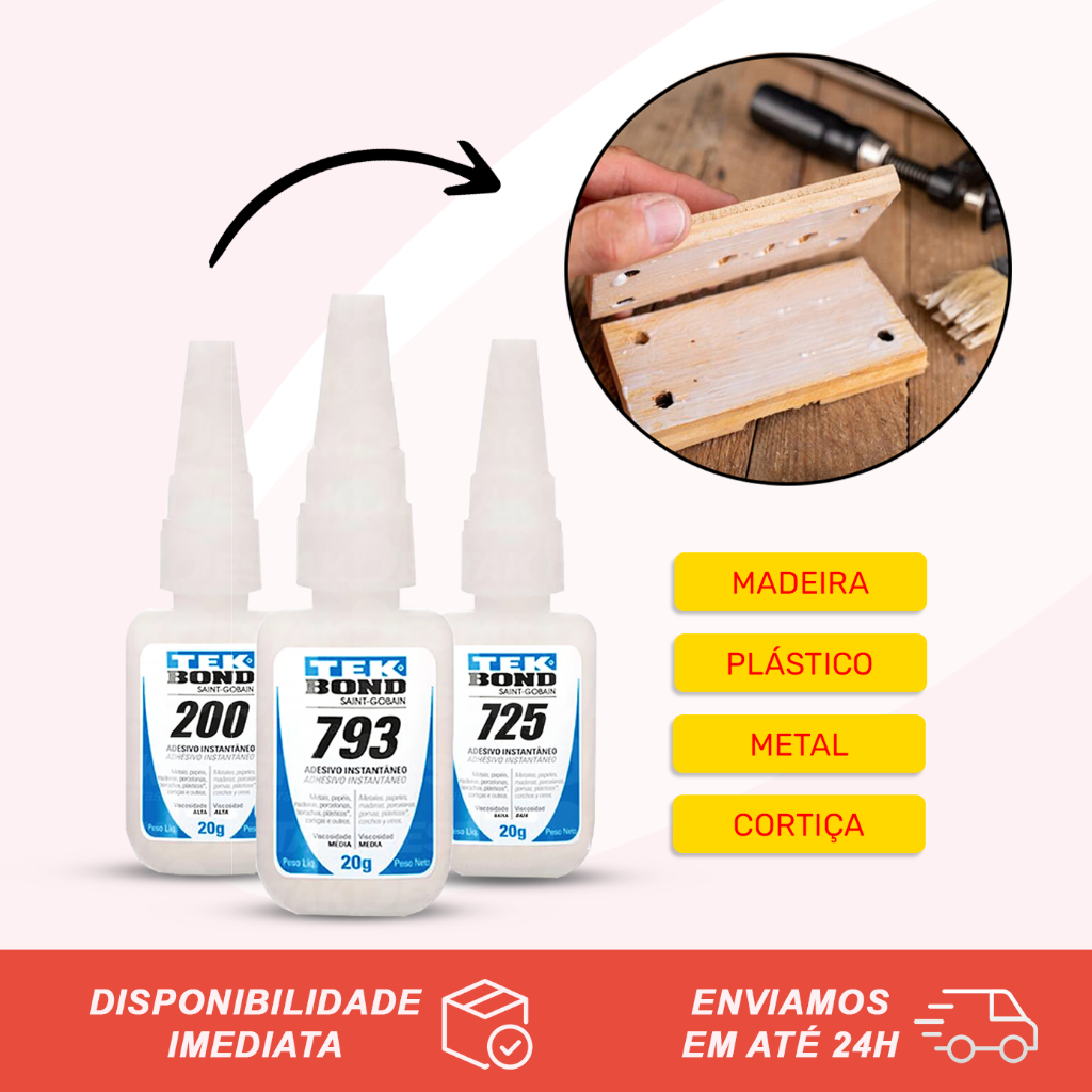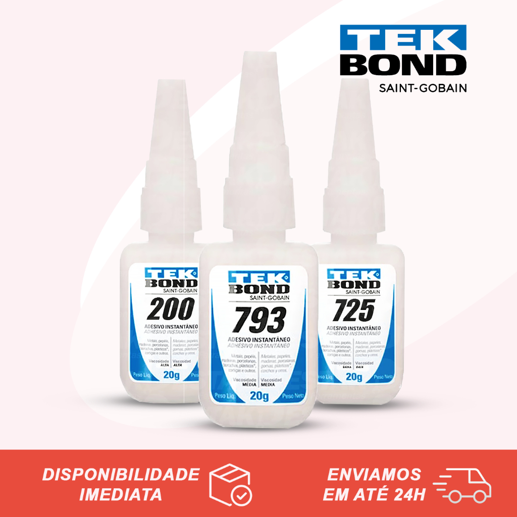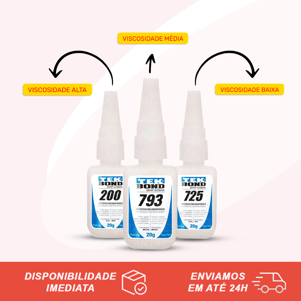 Super Cola Instantânea 200, 725 Ou 793 Multiuso Alta Resistência Unhas 20g Viscosidades Tekbond