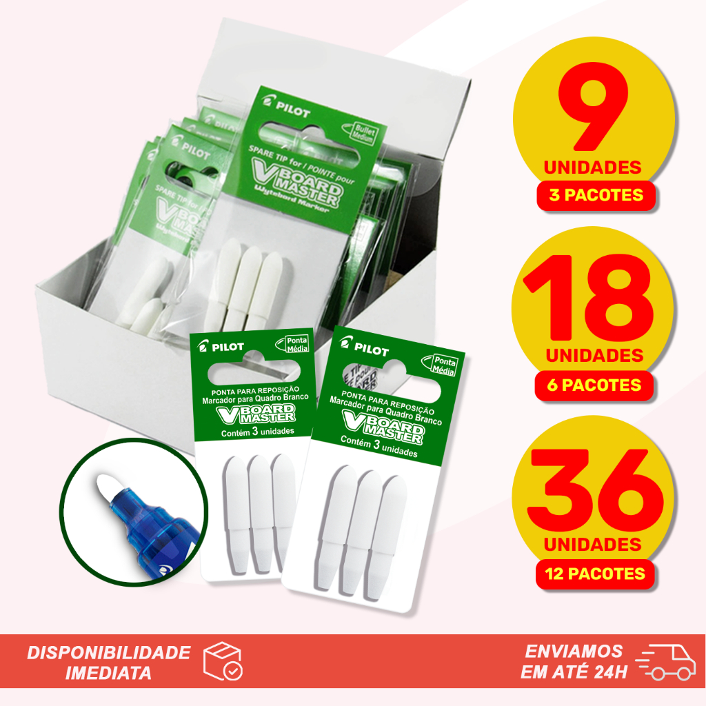 KIT PROMOCIONAL Pontas de Reposição WBTIP Para Marcador Recarregável de Quadro Branco WBMA V-Board Master Pilot