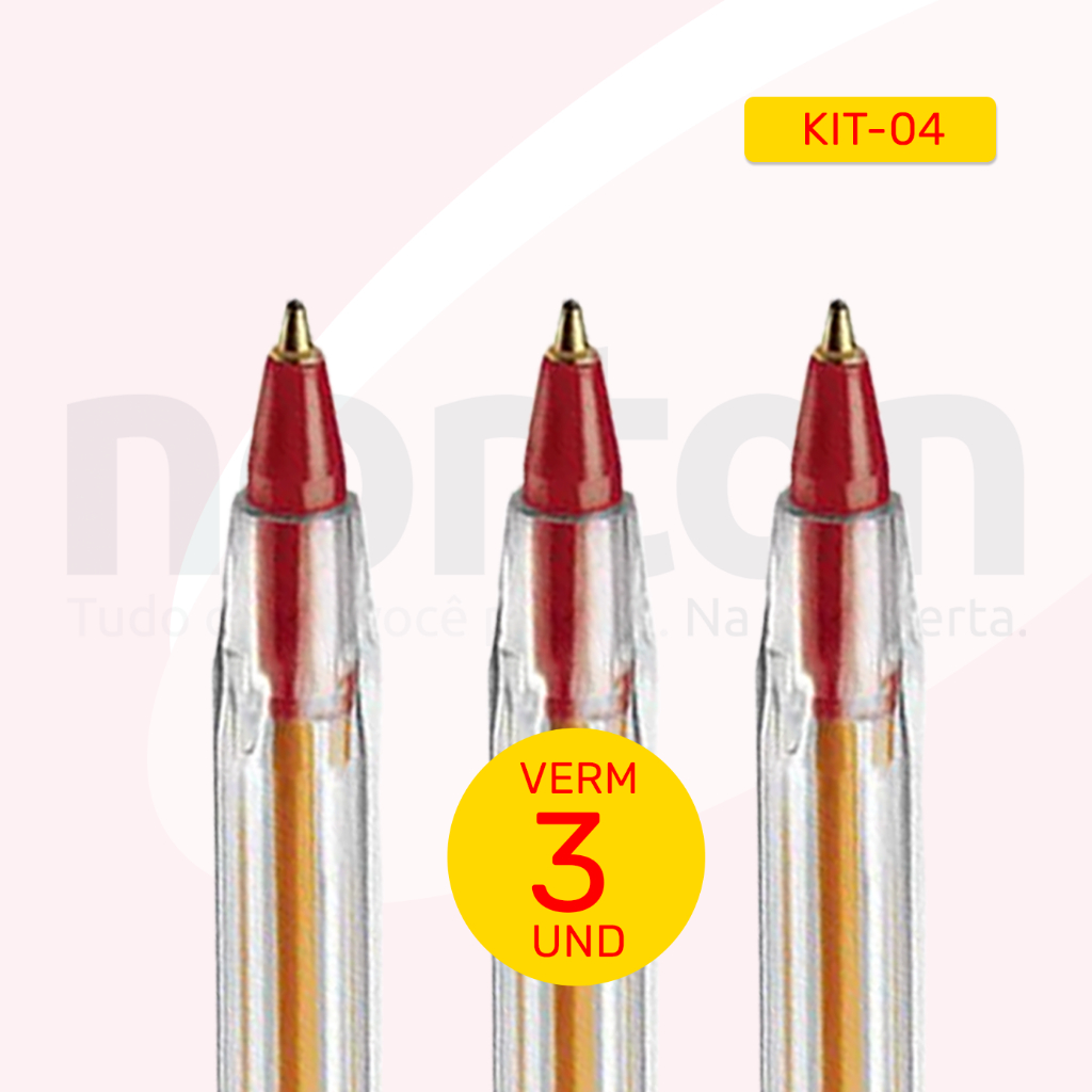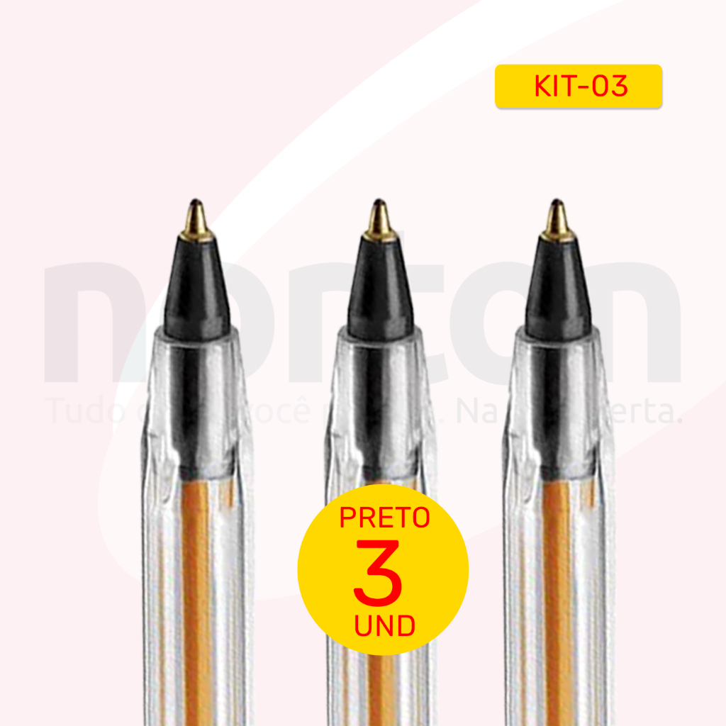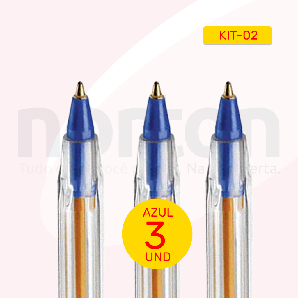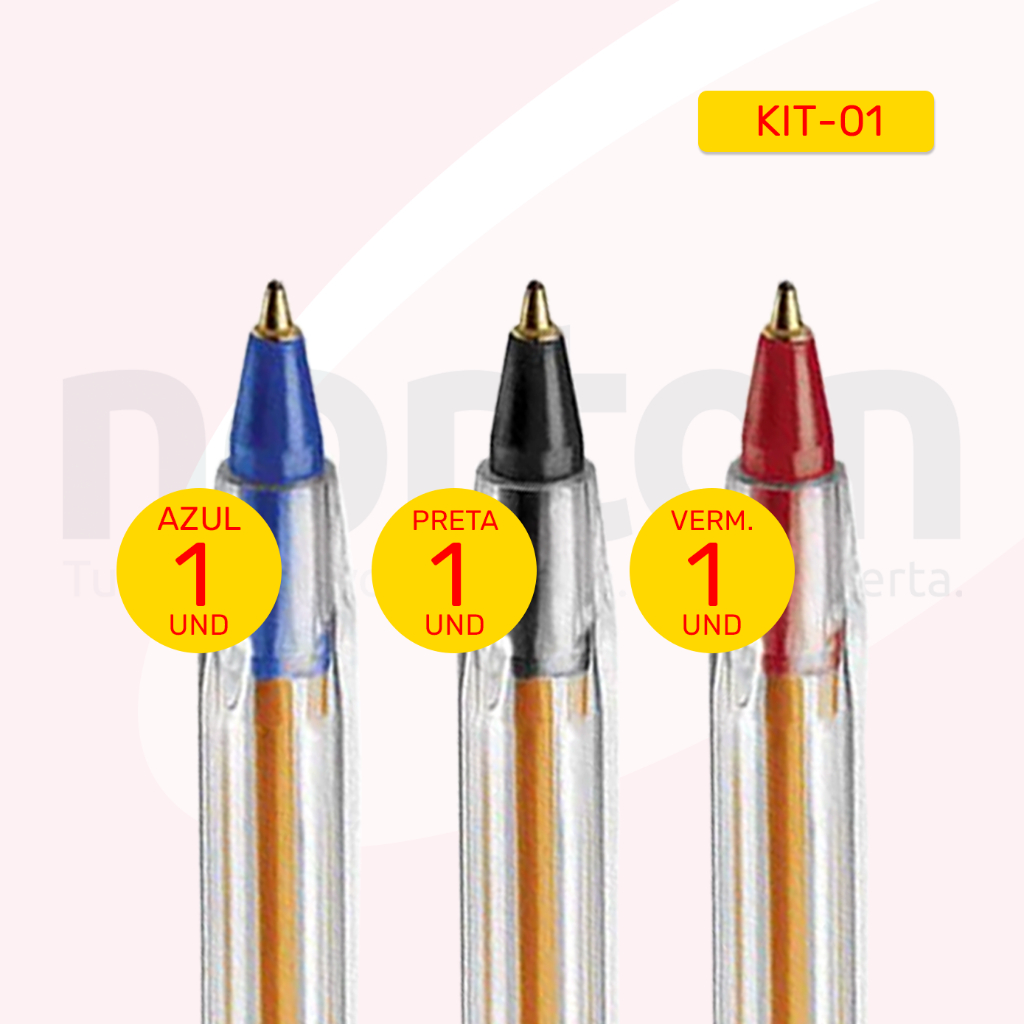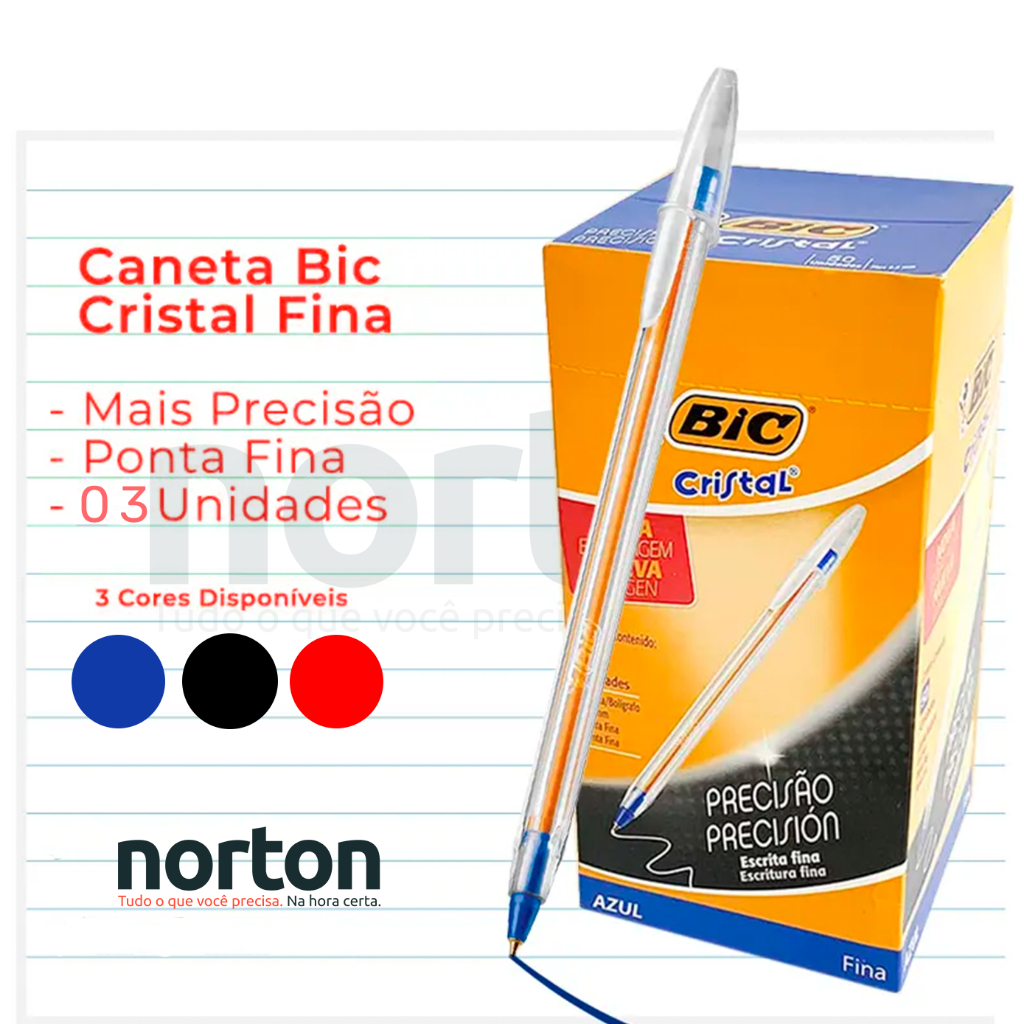KIT PROMOCIONAL Canetas Bic Cristal Esferográficas 0.8mm Ponta Fina Cores Azul, Preta e Vermelha Original 3 Unidades