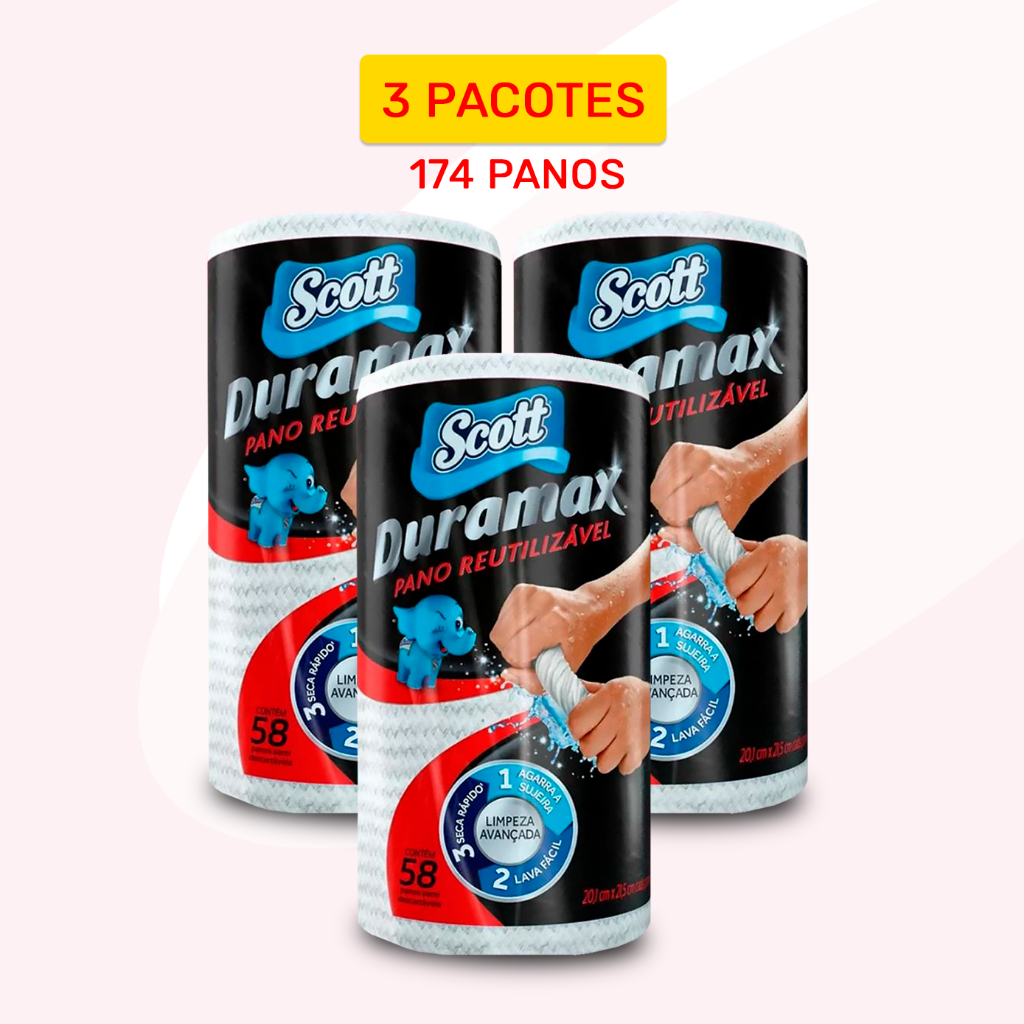 Kit Panos Duramax Scott Branco 21x22cm - Reutilizável Toalha Lavável Picotado Multiuso