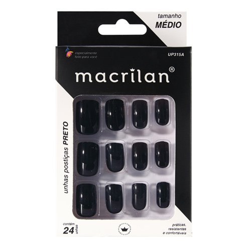 Unha Postiças Autocolantes - Amendoadas - Macrilan Cor Preta
