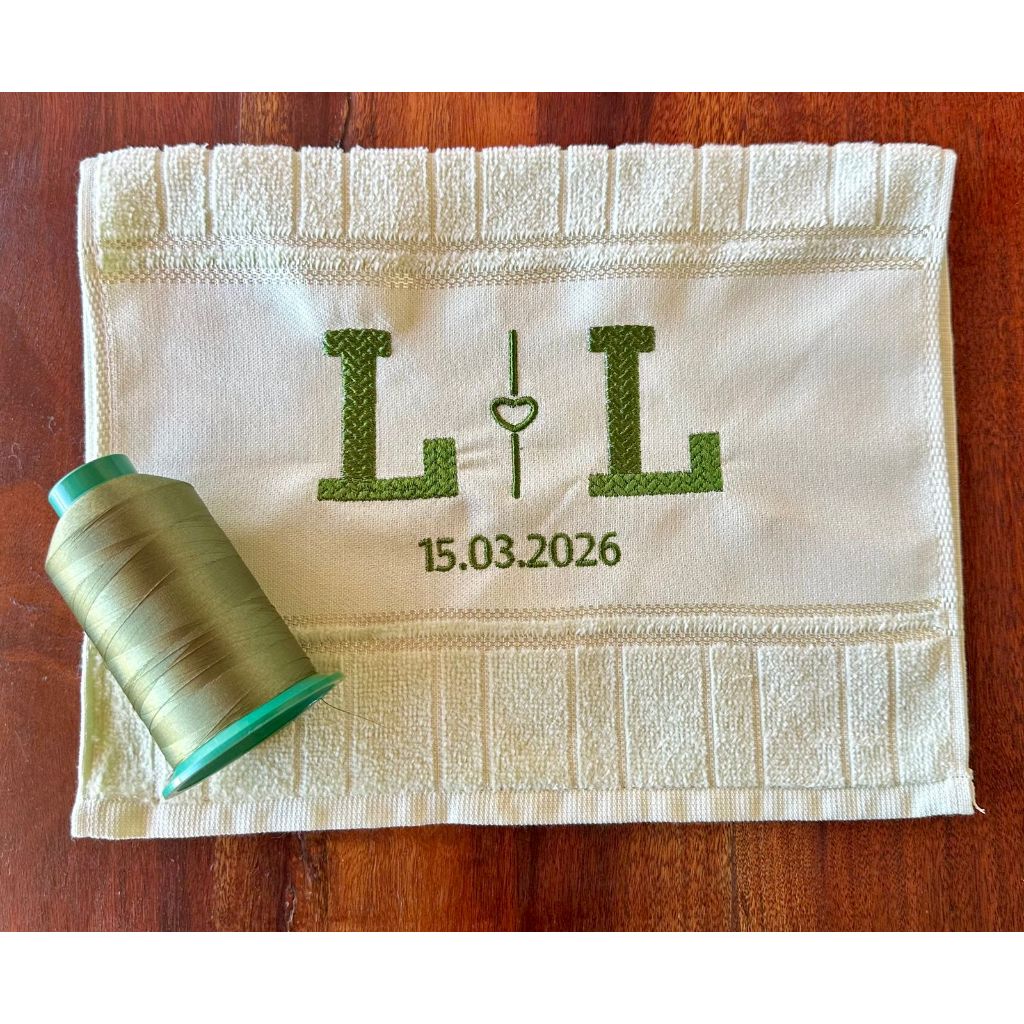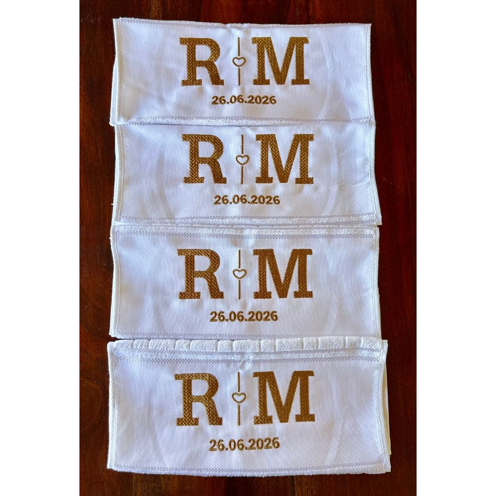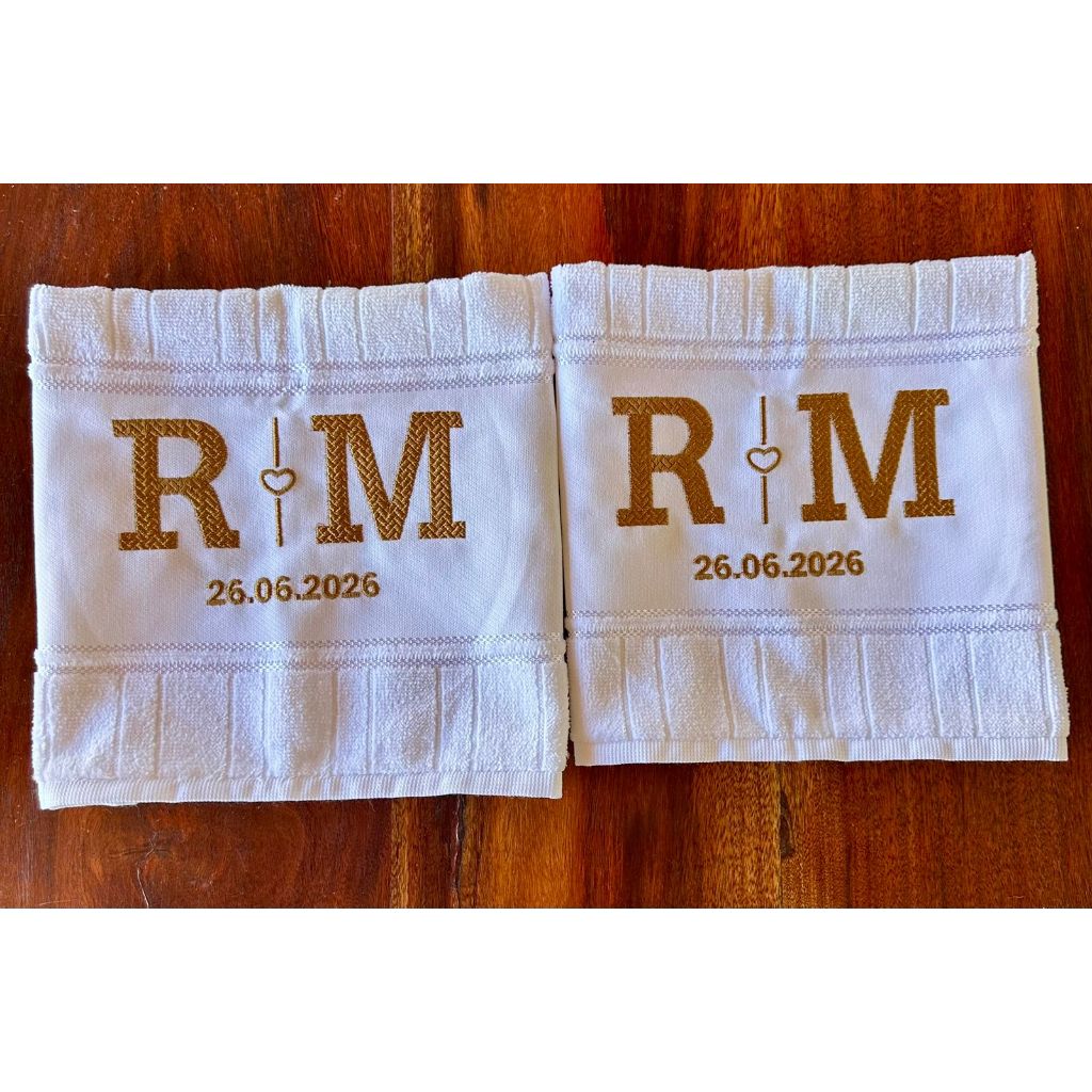 Toalha de Mão Bordada Iniciais do Casal e Data - Lembrança de Casamento/Bodas/Noivado - 30cmx45xm