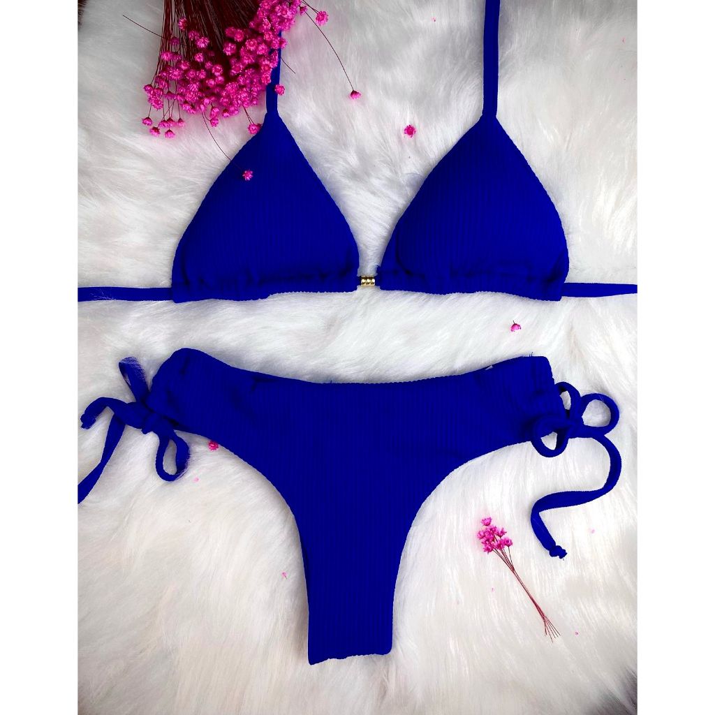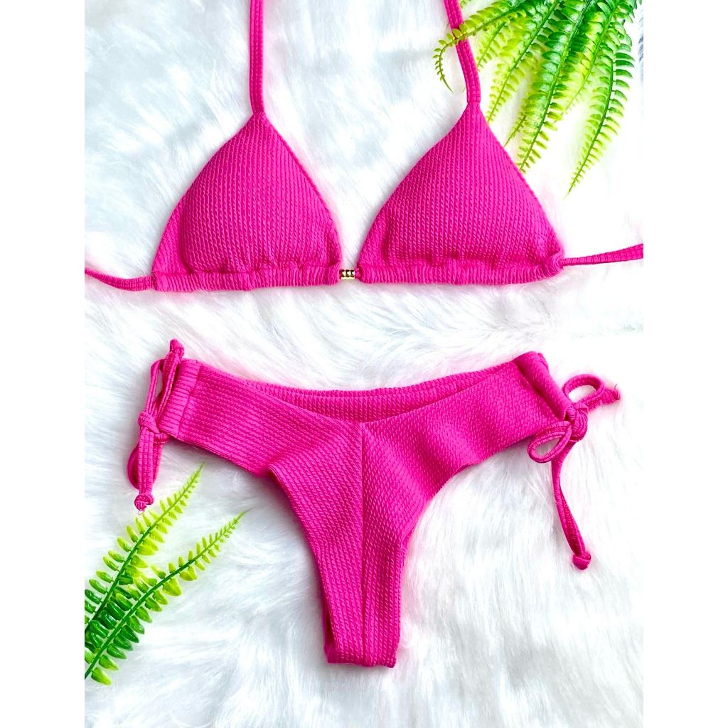 Biquini Curtininha Calcinha De Amarrar Fio Duplo Texturizado Com Bojo Removível Feminino