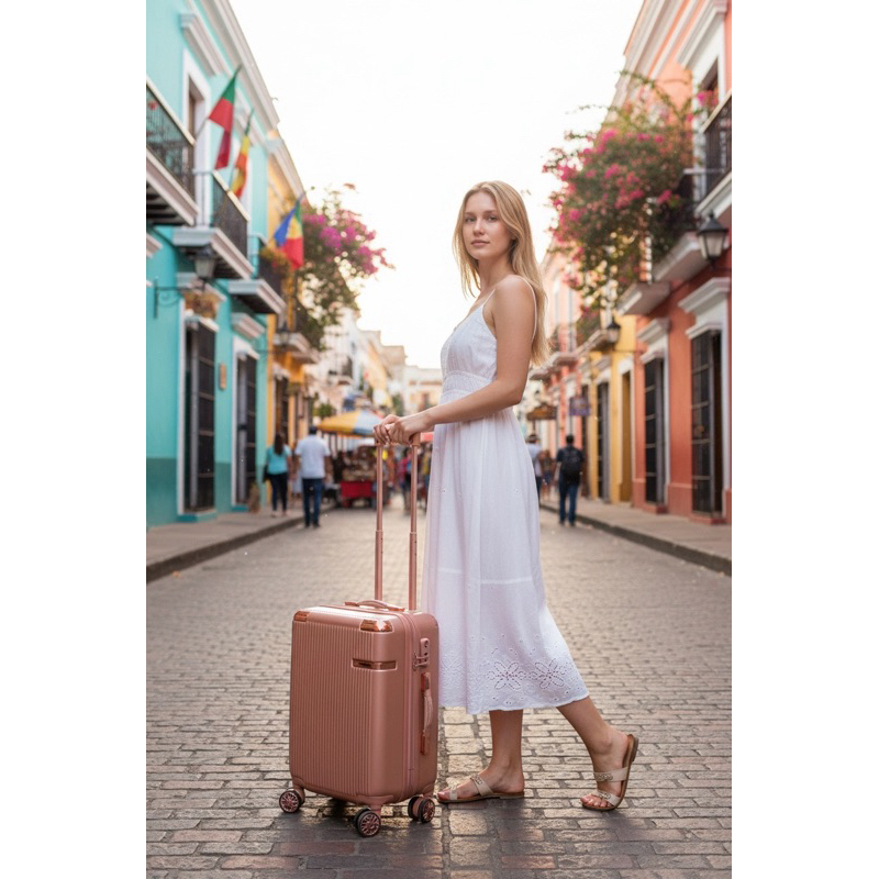 Mala Rose Gold bordo 10kg ABS rígida rodinhas 360 com zíper expansível