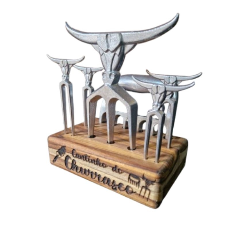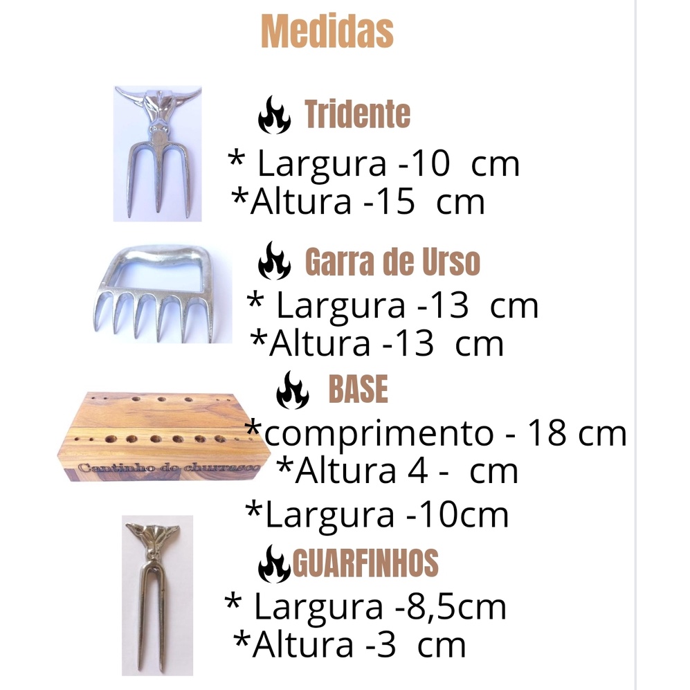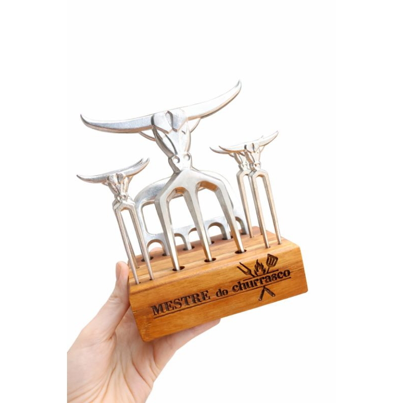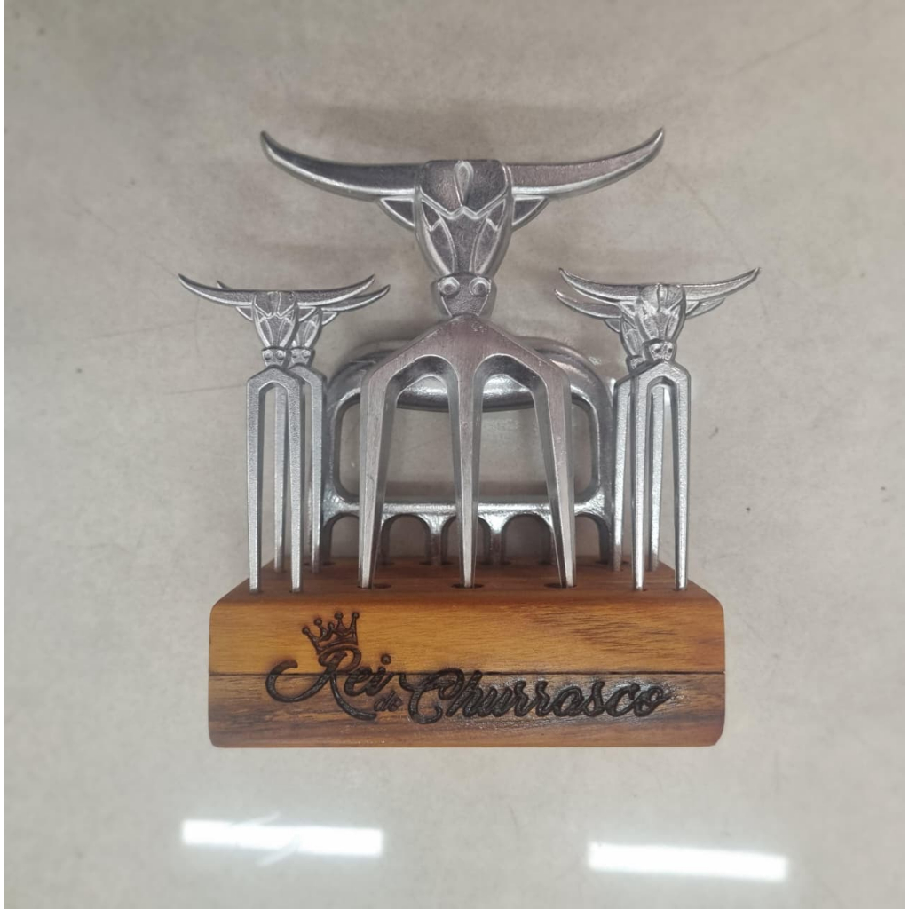 Kit Garra De Urso + Garfo Tridente + 4 Garfinhos Petisco Em Base De Madeira
