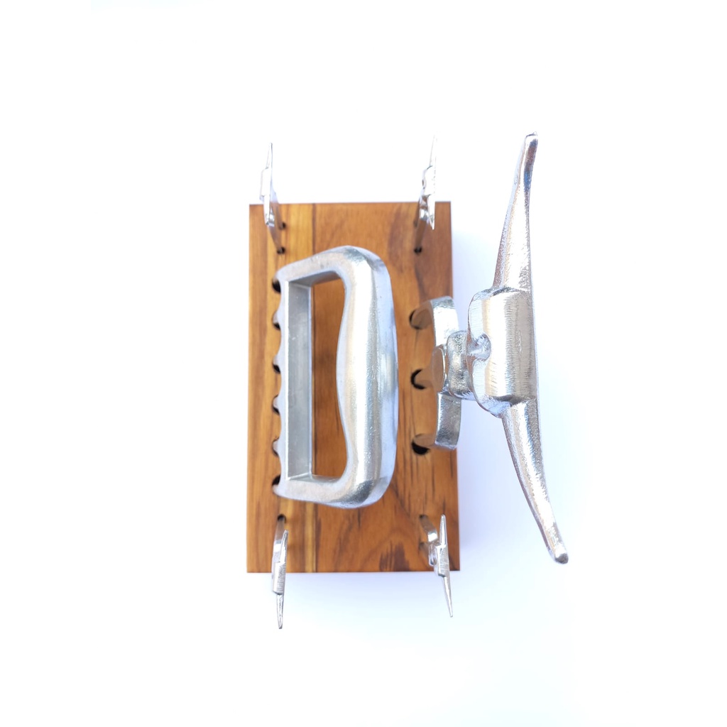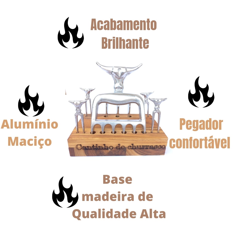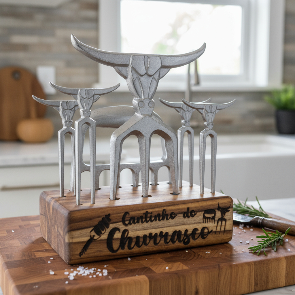 Kit Garra De Urso + Garfo Tridente + 4 Garfinhos Petisco Em Base De Madeira
