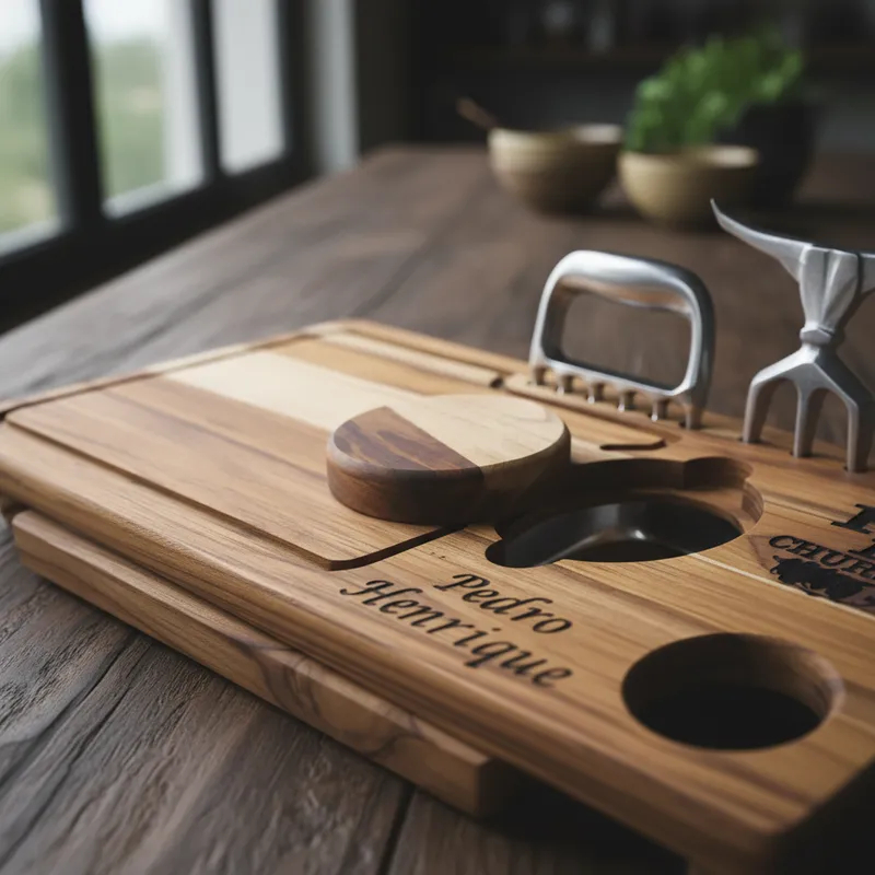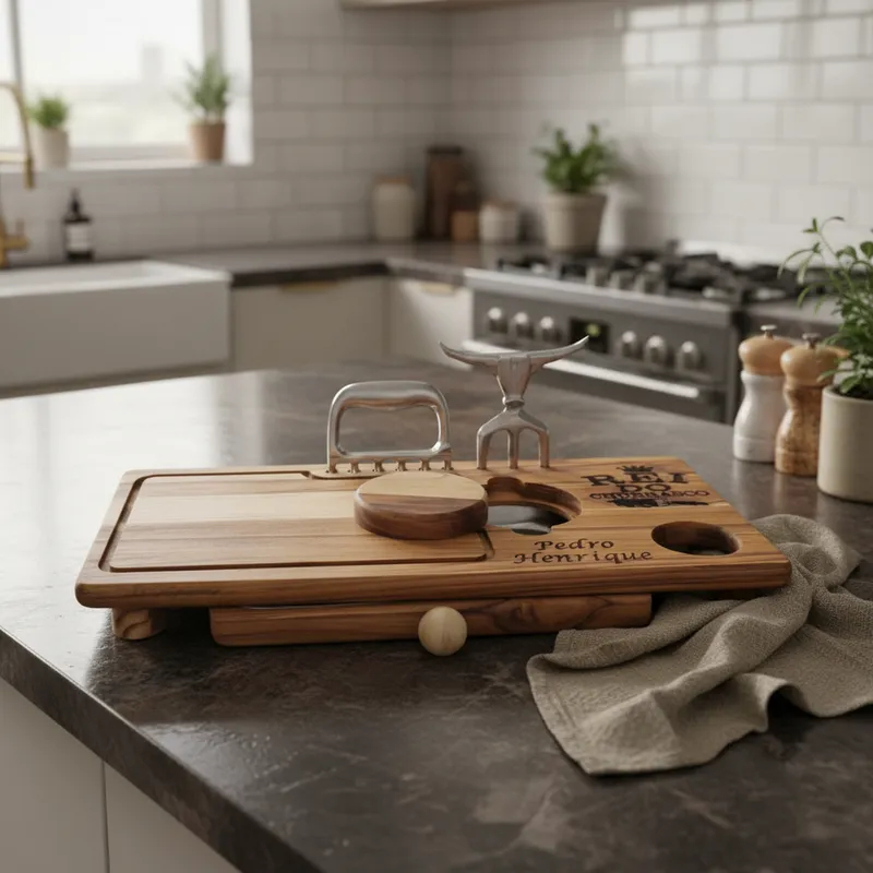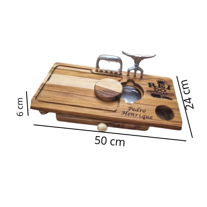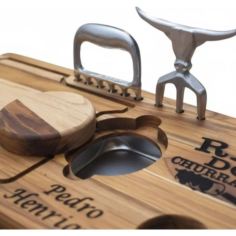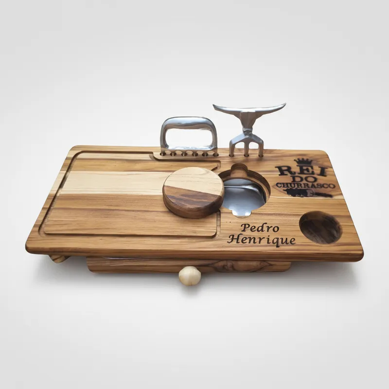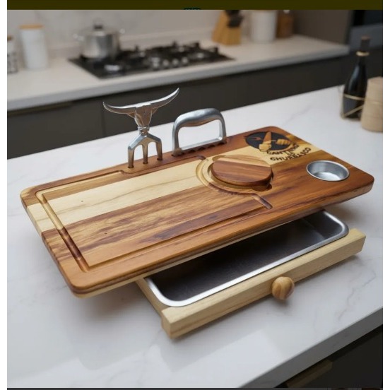 Tábua de Churrasco Personalizada com Gaveta + Garra e Tridente – Presente Gourmet Compacta