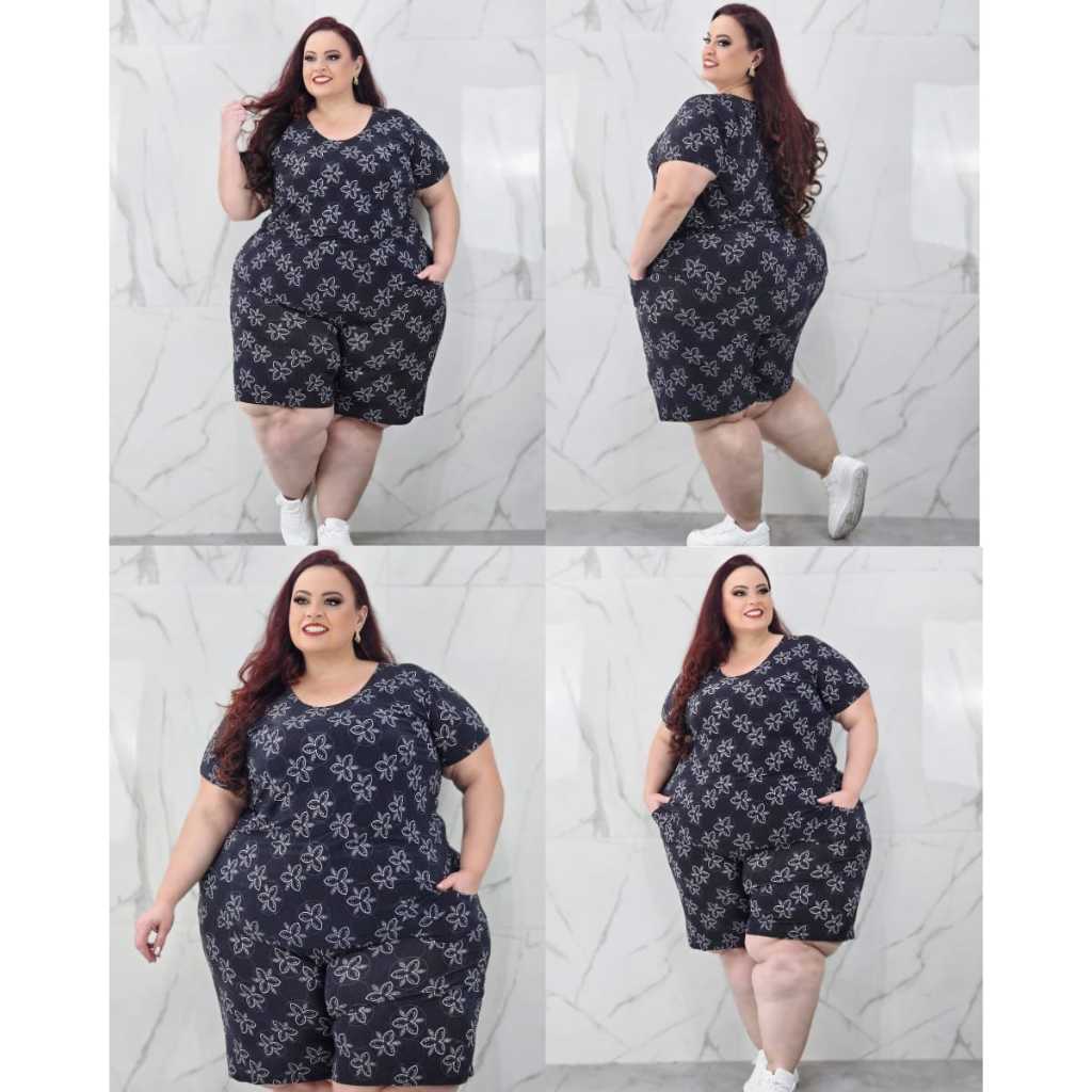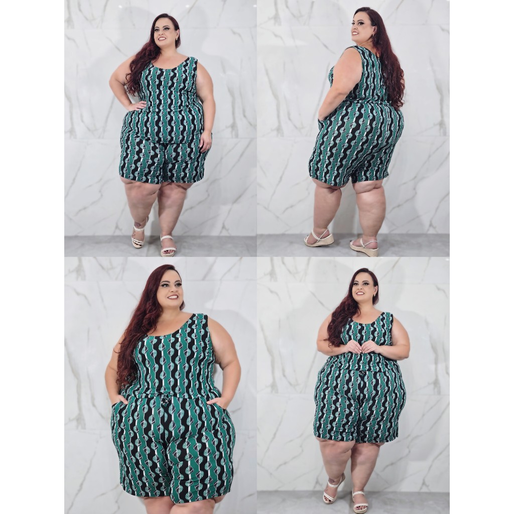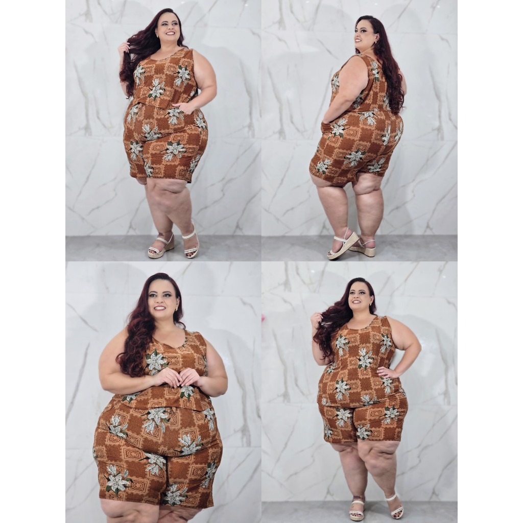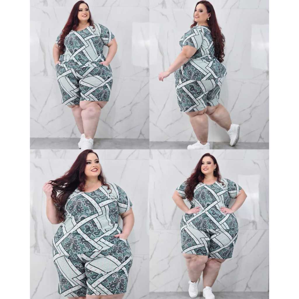 Conjunto Feminino Plus Size G1 G2 G3 G4 G5 Estampado Senhora Soltinho Regata Bermuda Liganete
