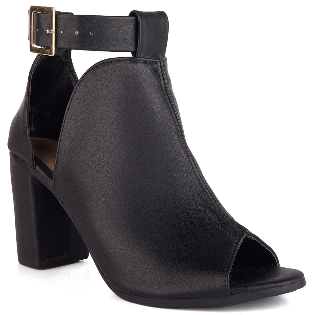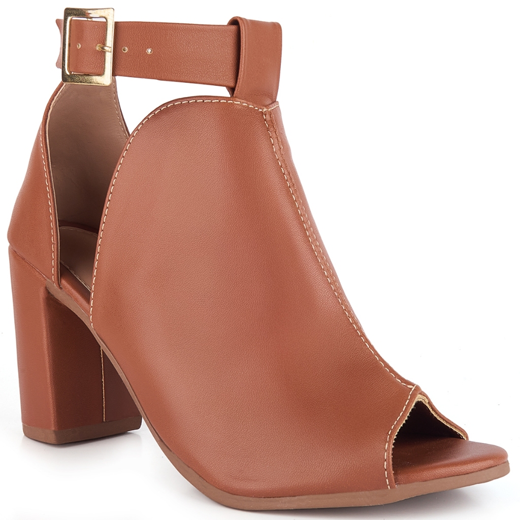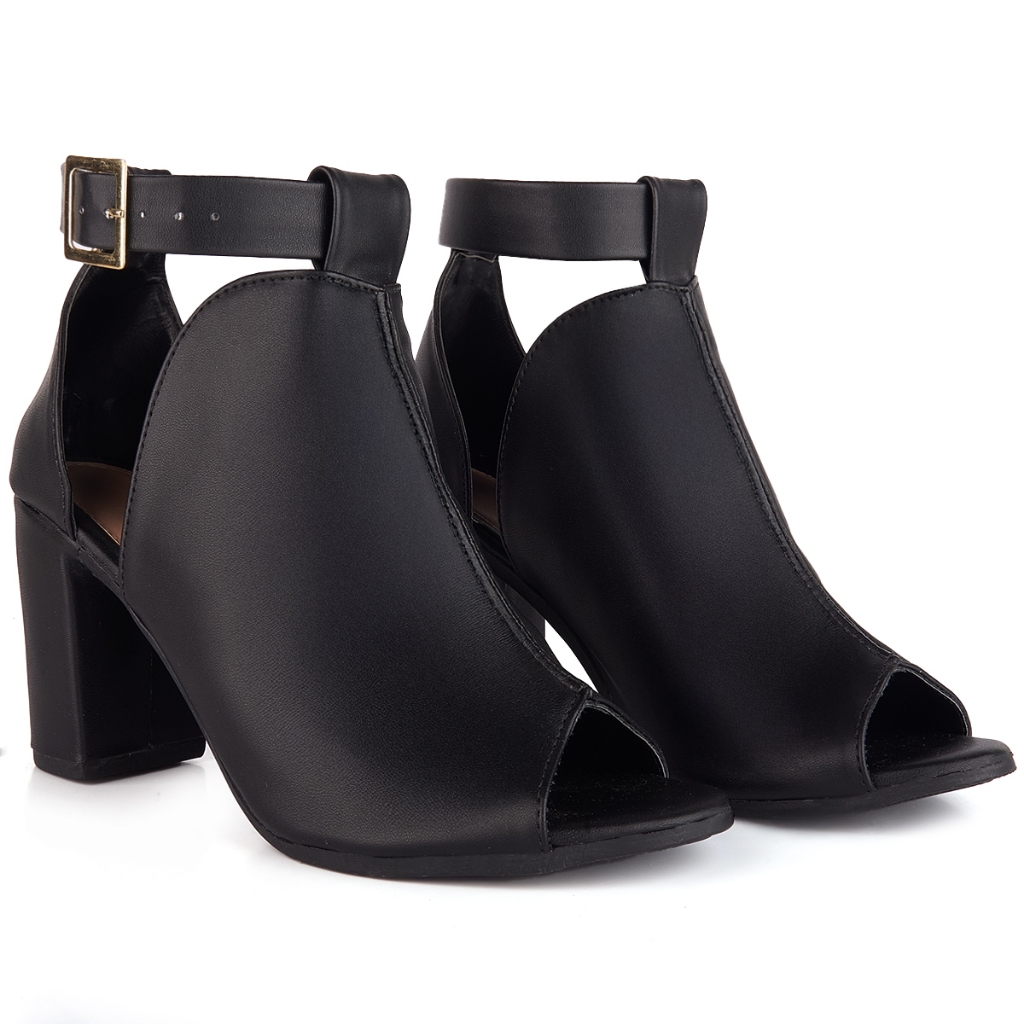 Sandália Feminina Moda Casual Ankle Boots Fechada Salto Alto Grosso 8,5cm Tendência Antiderrapante
