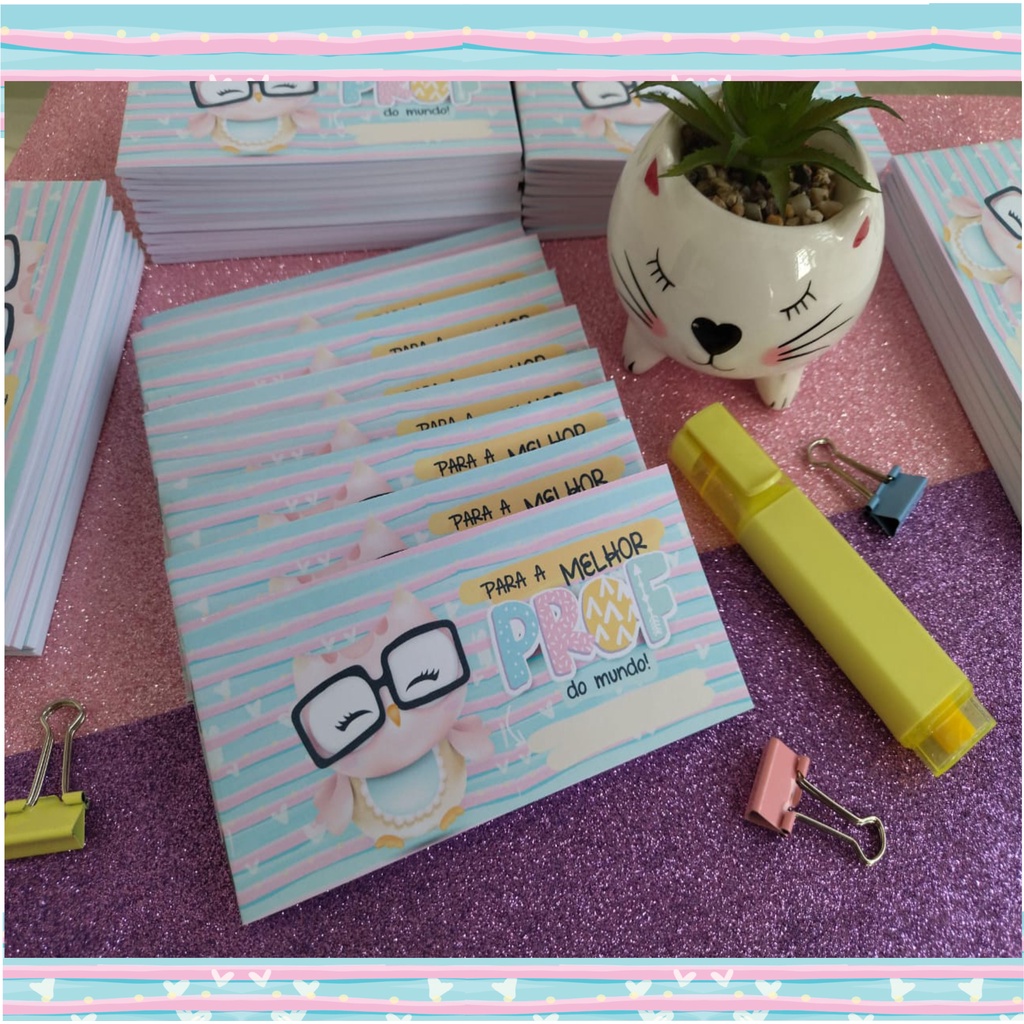 Lembrancinha Dia dos Professores Bloquinho de Anotações ( Tam. 6,3 x 13,5 Coruja Rosa )