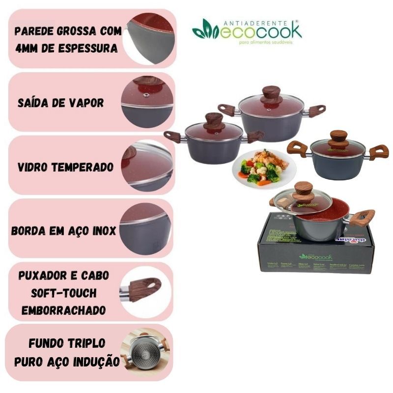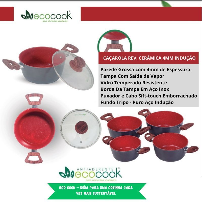 Jogo de Panelas Premium Versáteis 4peças Perfeitas para Indução e Todos os Fogões Revestimento Cerâmico sem óleo