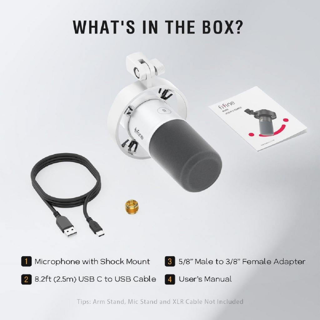Microfone Dinâmico FIFINE K688W USB XLR De Mesa Branco