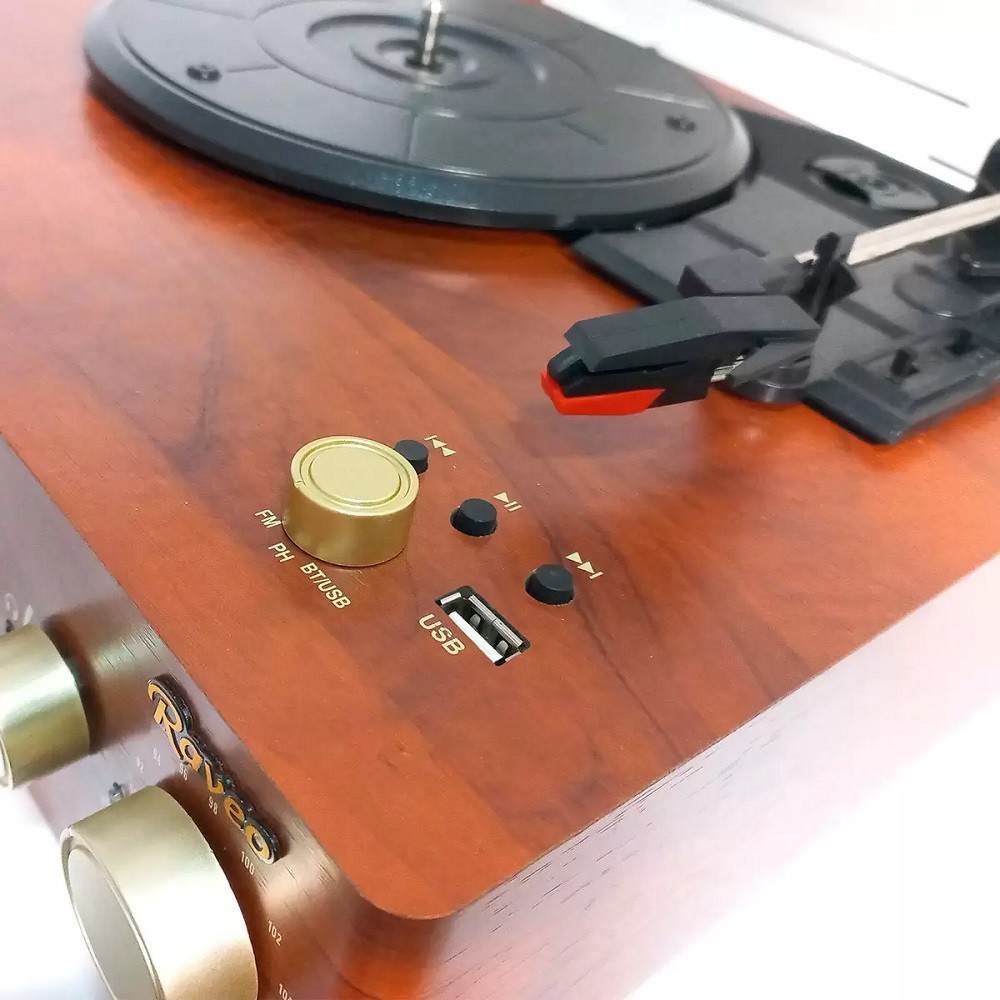 Vitrola Toca Discos Raveo Studio Usb Bluetooth FM Auxiliar Marrom
