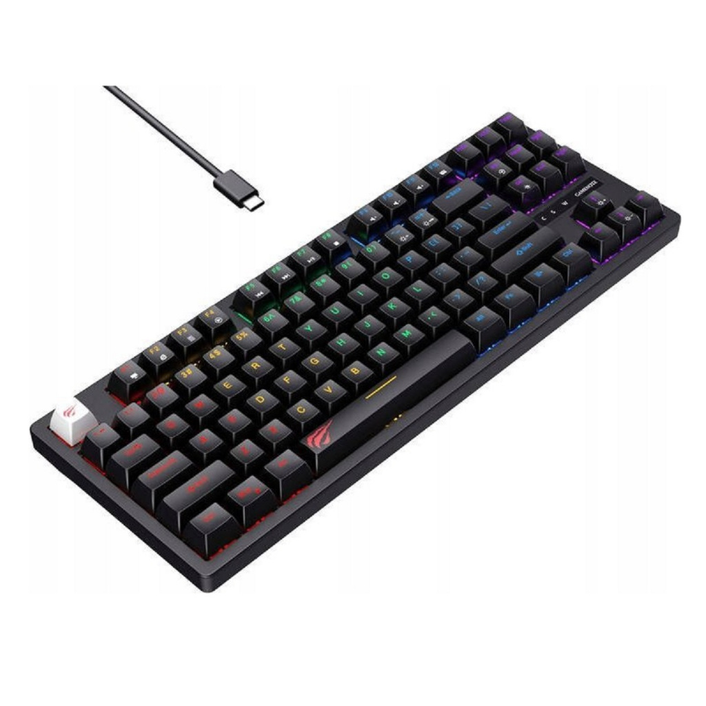 Teclado Gamer Mecânico Com Fio Havit KB892L RGB Switch Blue Usb Preto