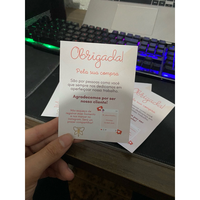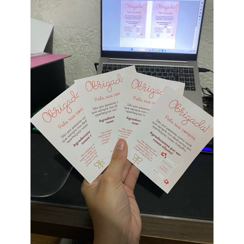 Cartões de agradecimento pela compra COLOCAMOS SUAS REDES SOCIAIS