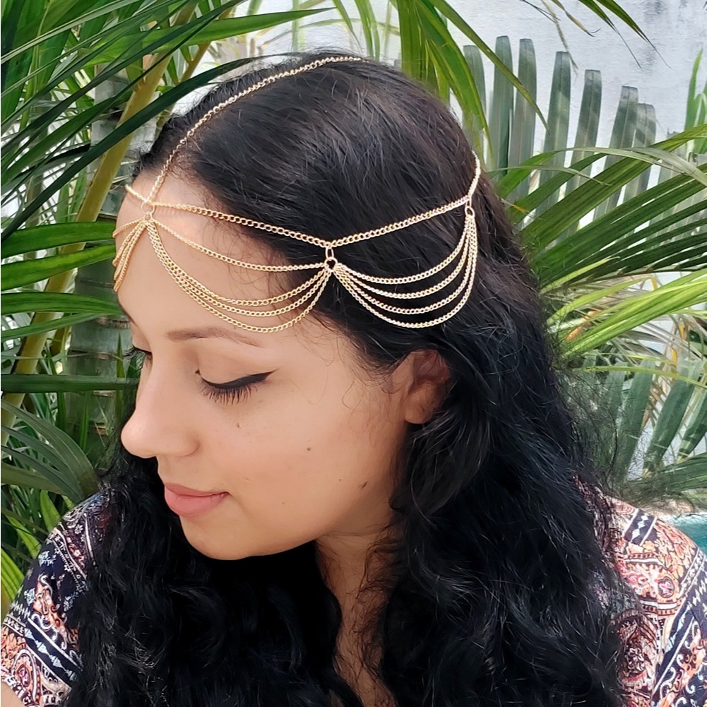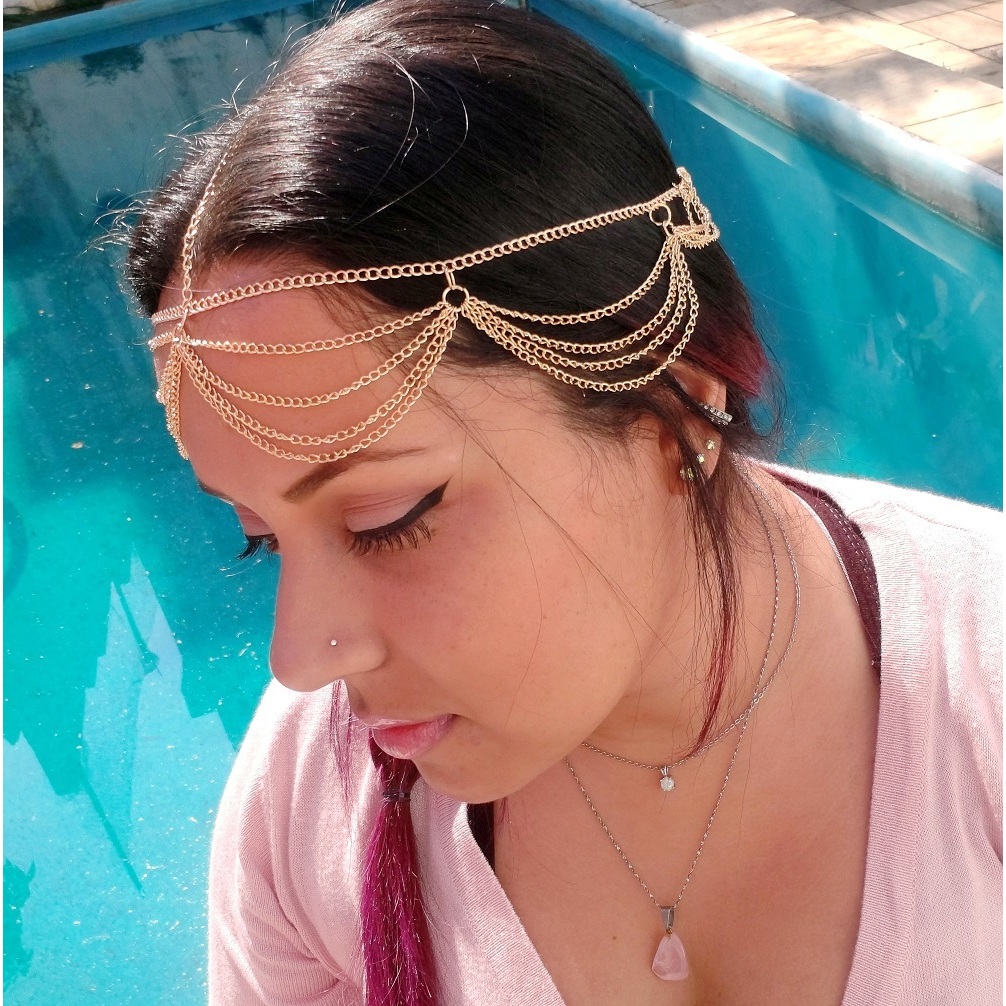 Acessório De Cabelo Tiara Head Chain Camadas Douradas