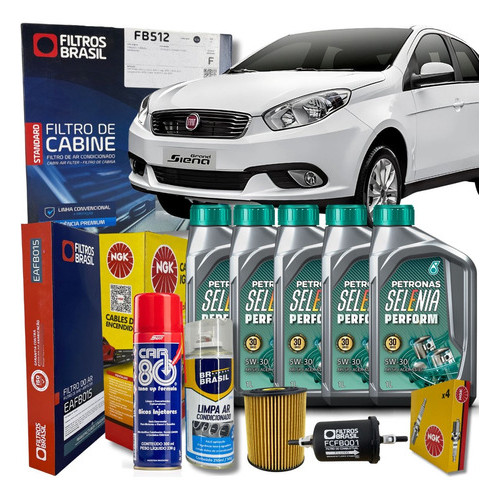 Kit Revisão Óleo Filtros Velas e Cabos - Fiat Grand Siena 1.6 16V 2015 Em diante