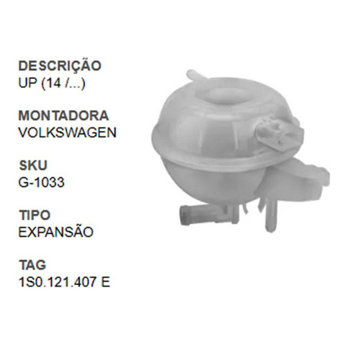 Reservatório Água Radiador - VW UP 1.0 12V 2014 2015 2016 2017 2018 2019 2020 2021 2022 2023