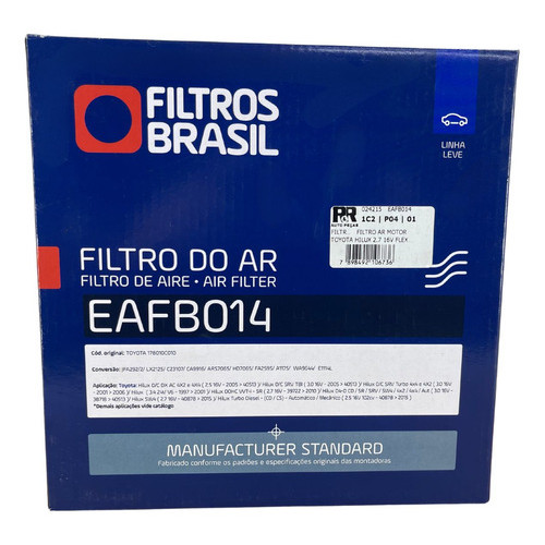 Filtro de Ar Reforçado Toyota Hilux 2.5 3.0 2005 2006 2007 2008 2009 2010 2011 2012 2013 2014 2015