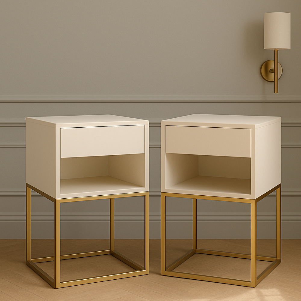 Kit 2 Un Mesa de Cabeceira Sofia Estilo Industrial Base Aço 1 Gaveta E 1 Nicho - LH Móveis