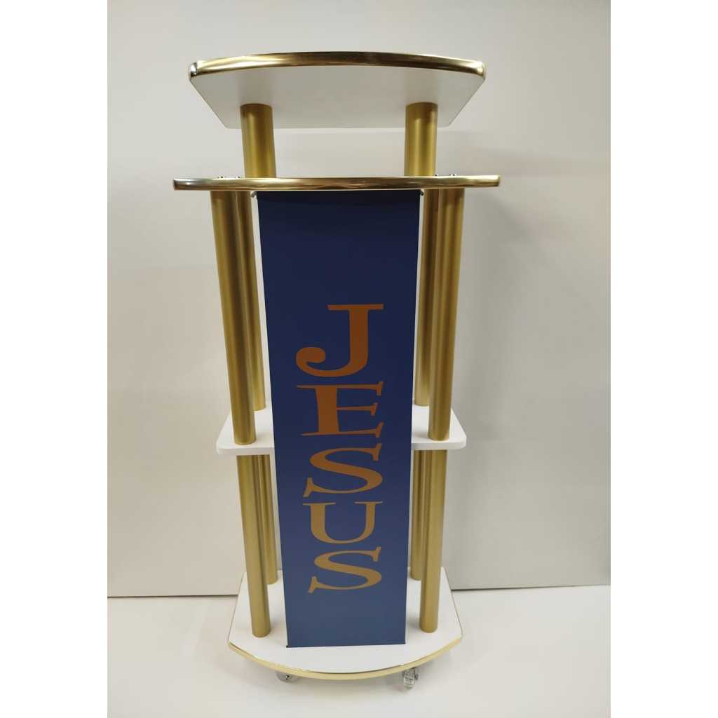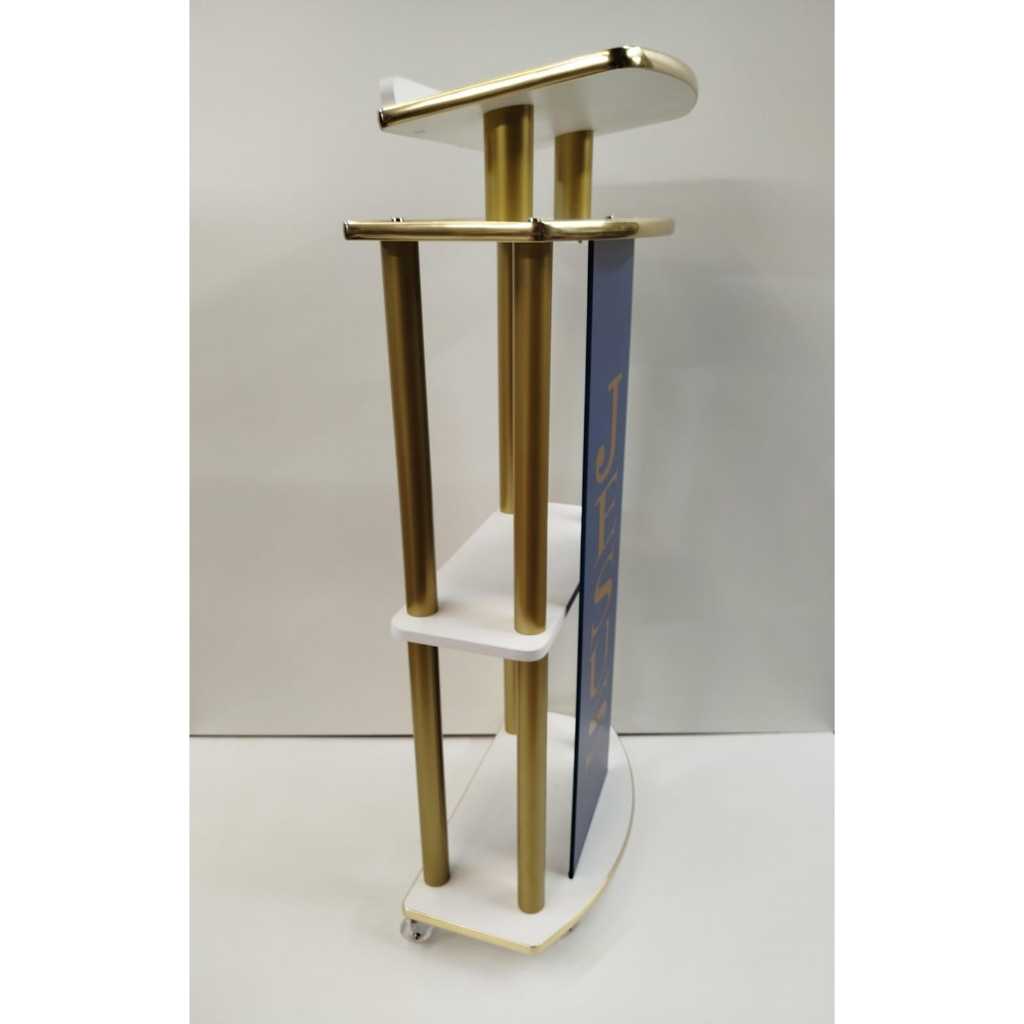 Púlpito Madeira Tubo Dourado Placa Preta E Friso M06 - Escolher a cor