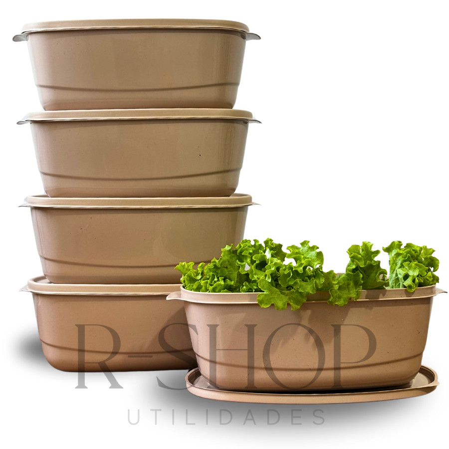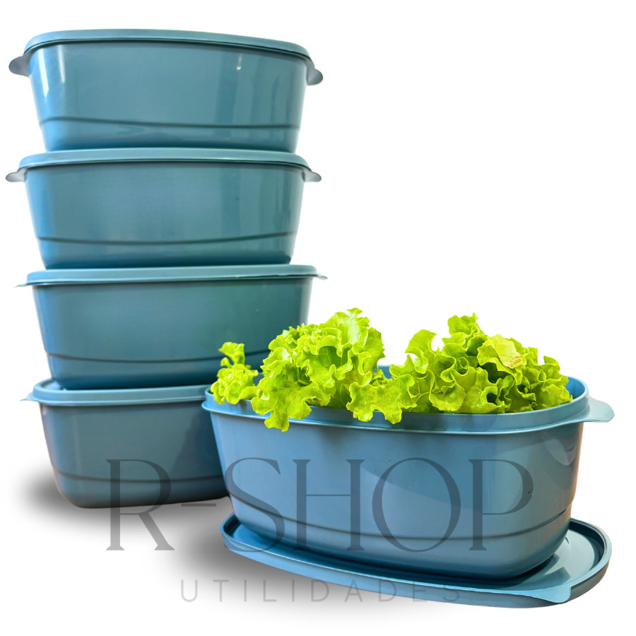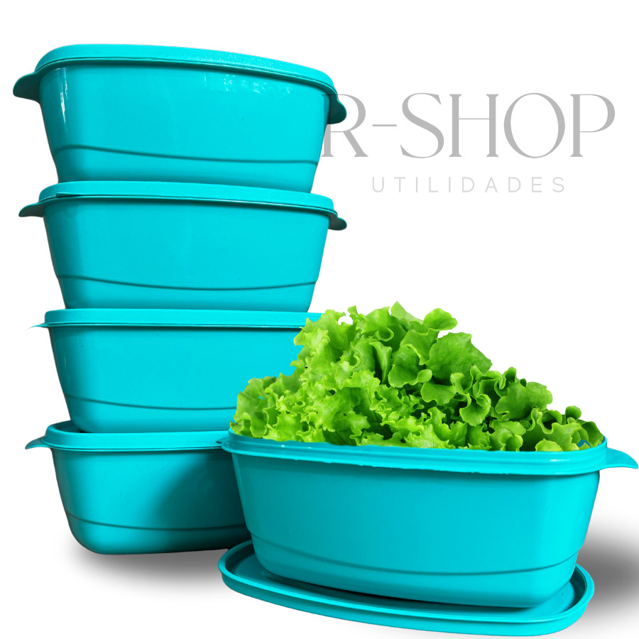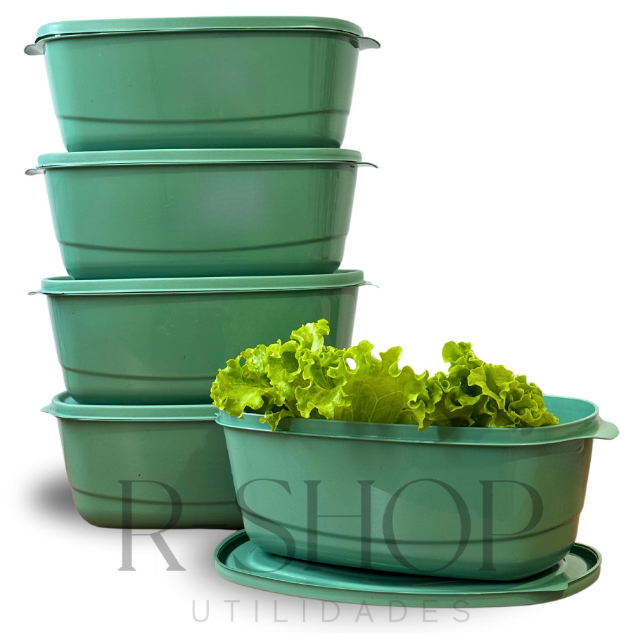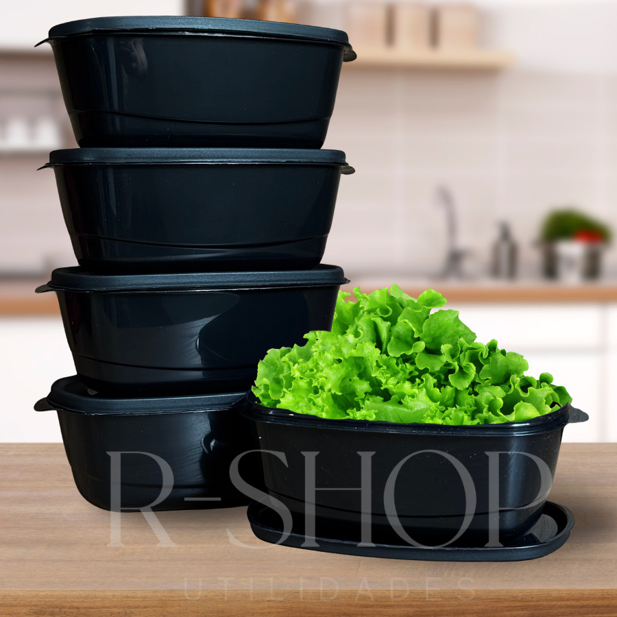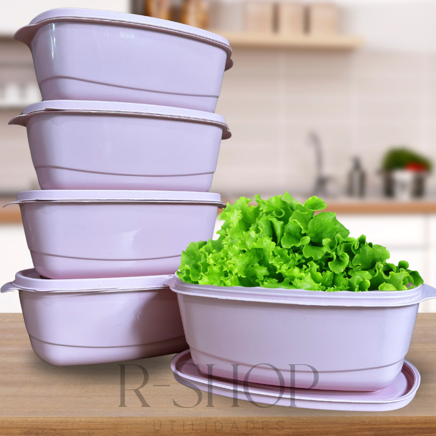 Kit 05 Potes 3 litros Herméticos Saladeira Grande Plástico Cores Alta Vedação Cozinha Alimentos