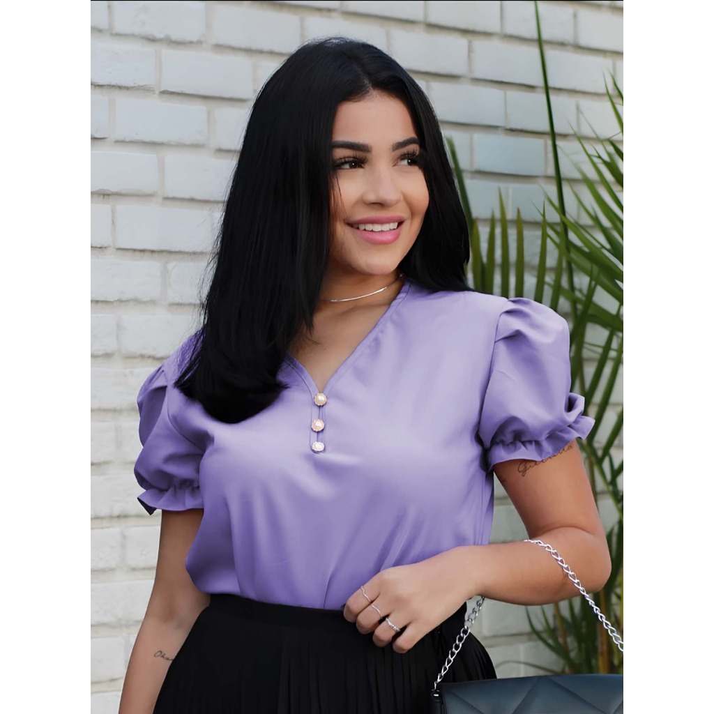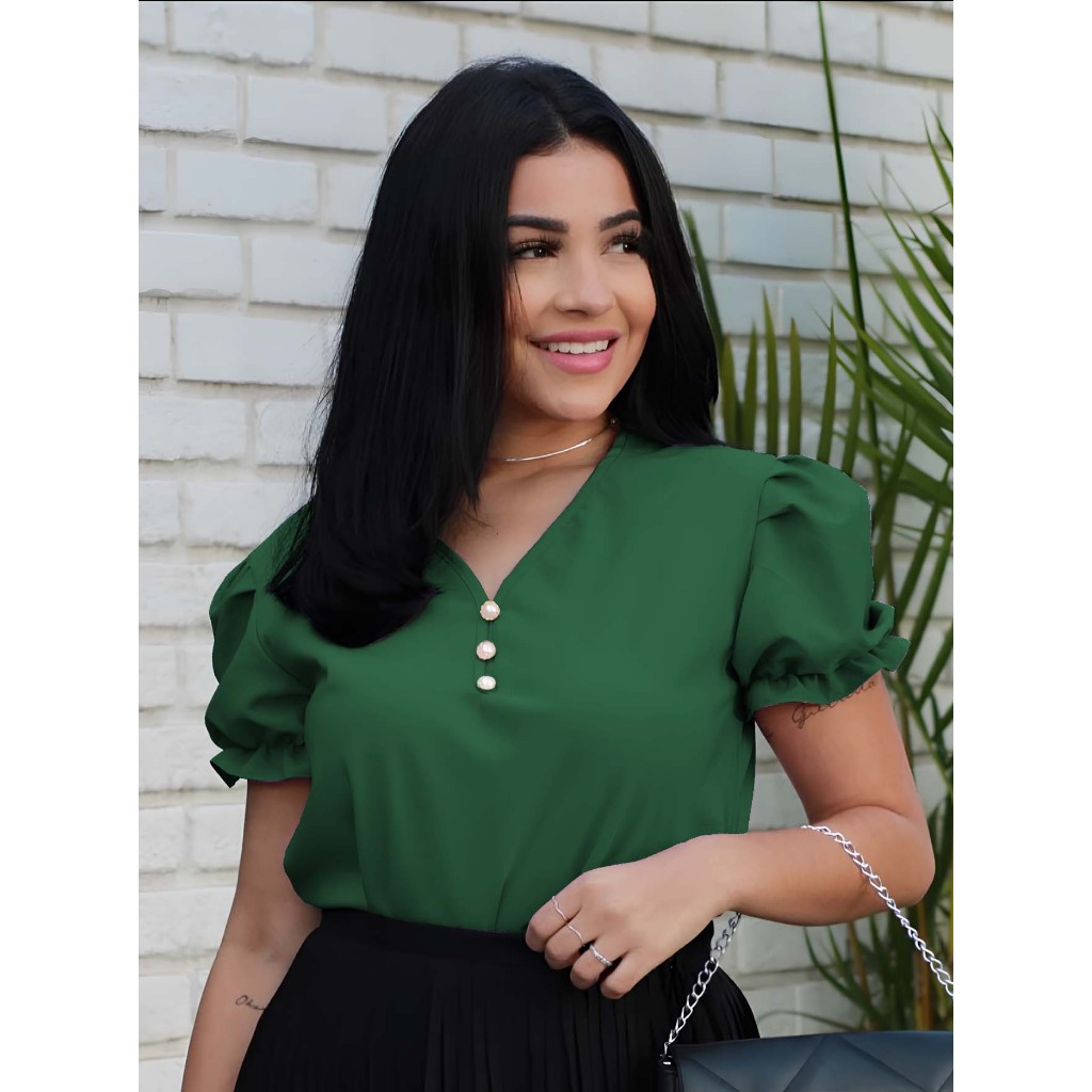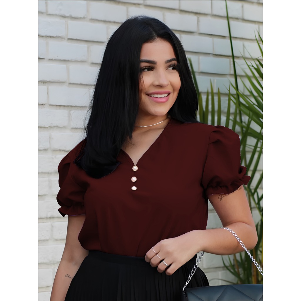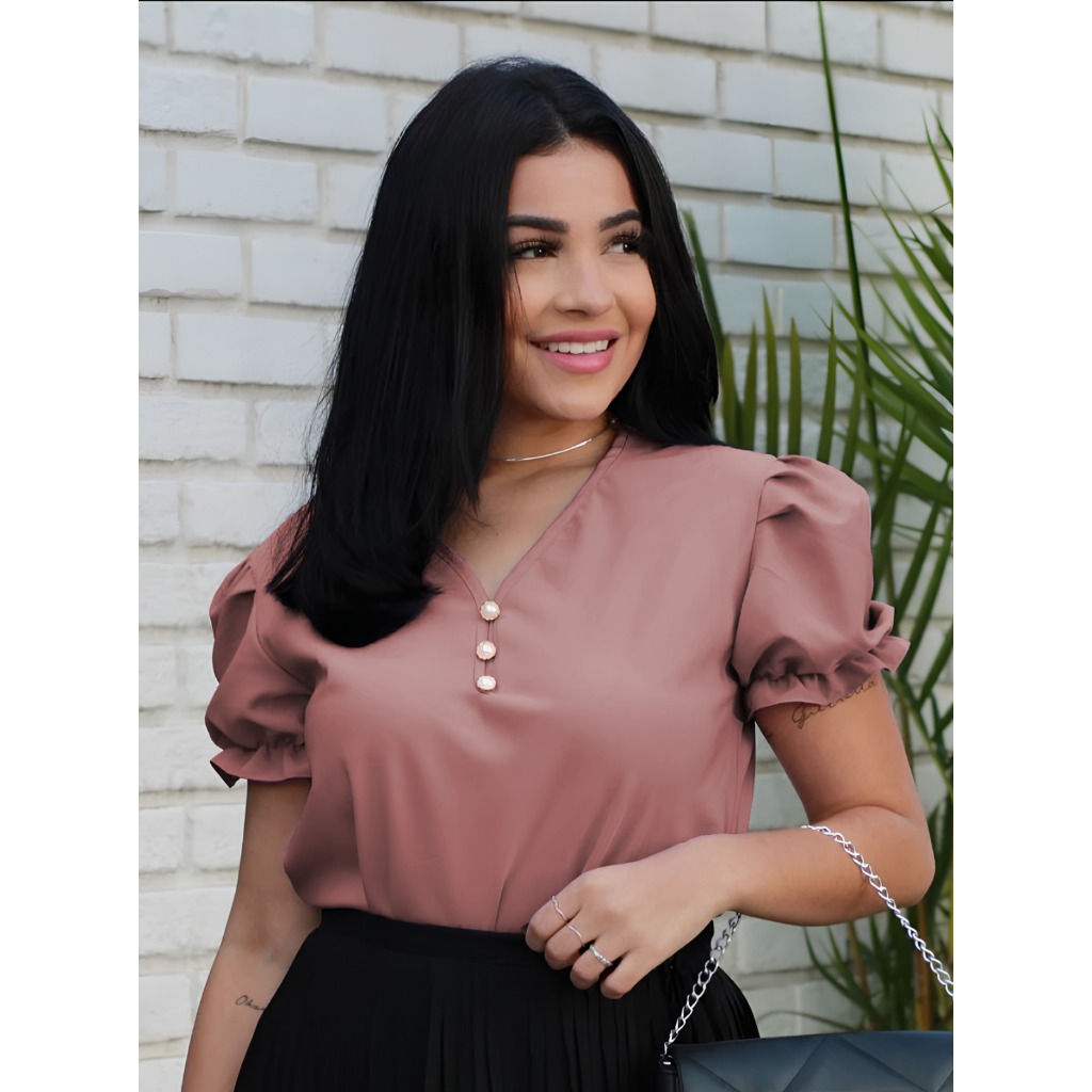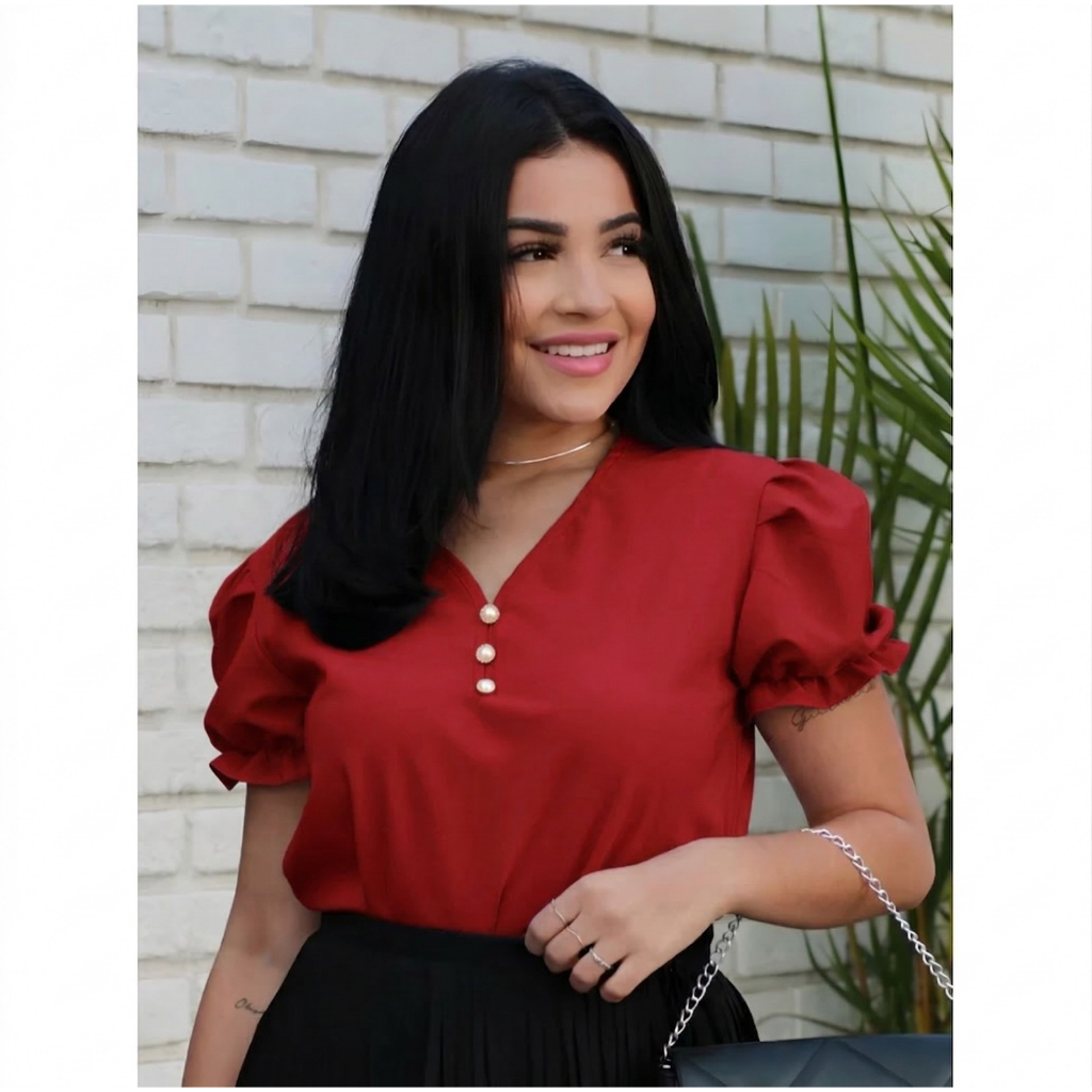 Blusa Socia feminina Manga Bufante Moda Evangélica com Pérolas Blusinha