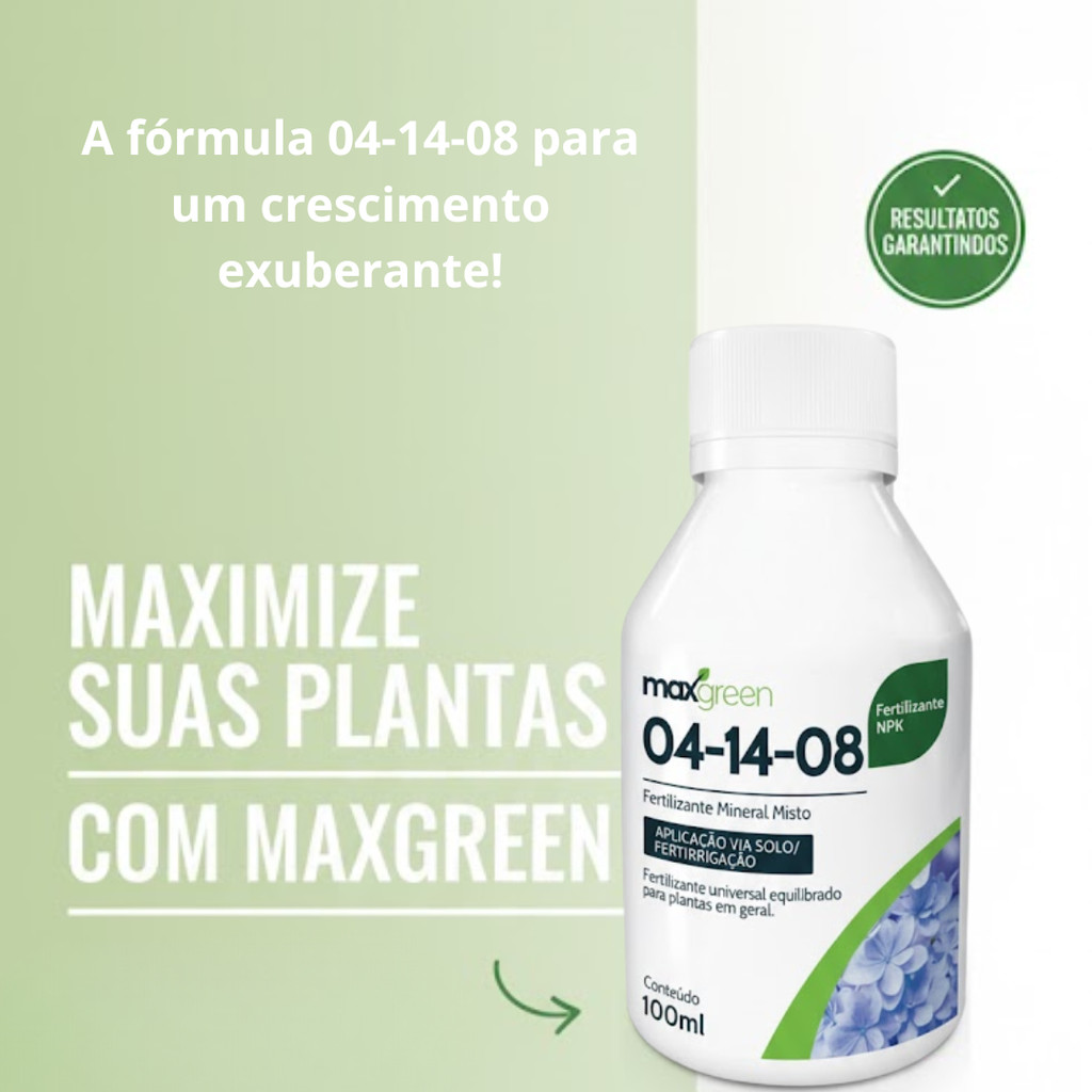 Kit Fertilizante Líquido NPK 10-10-10 e 04-14-08 Maxgreen Adubos 100ml cada