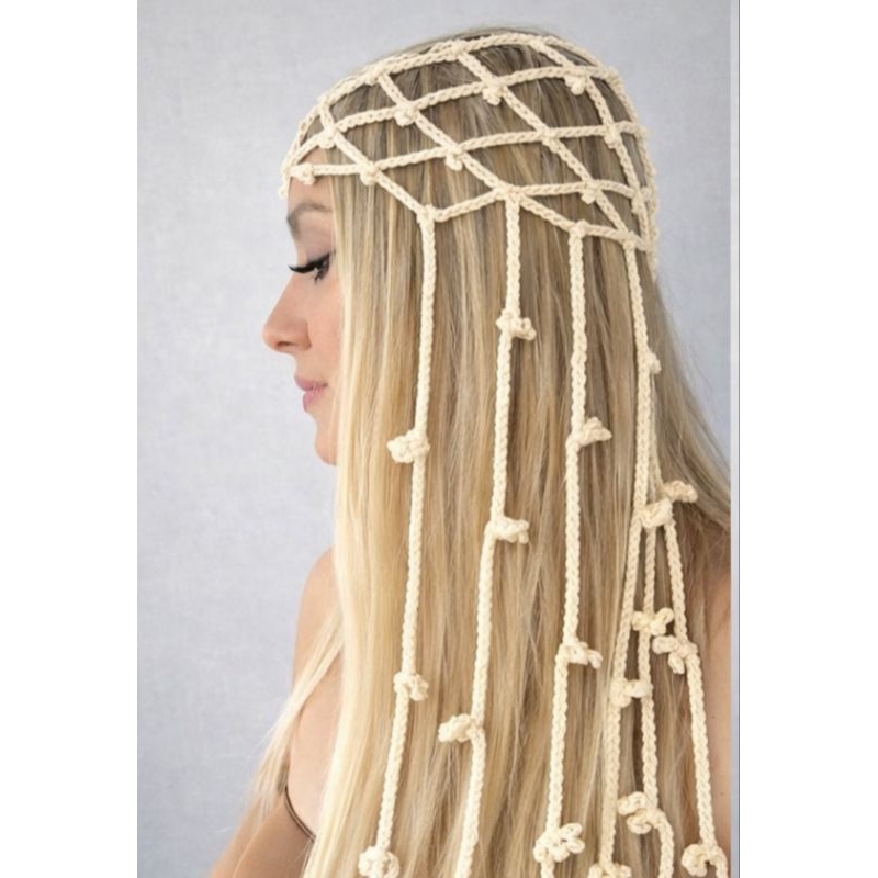 headpiece com cordões de flores touca de verão vintage, moda praia