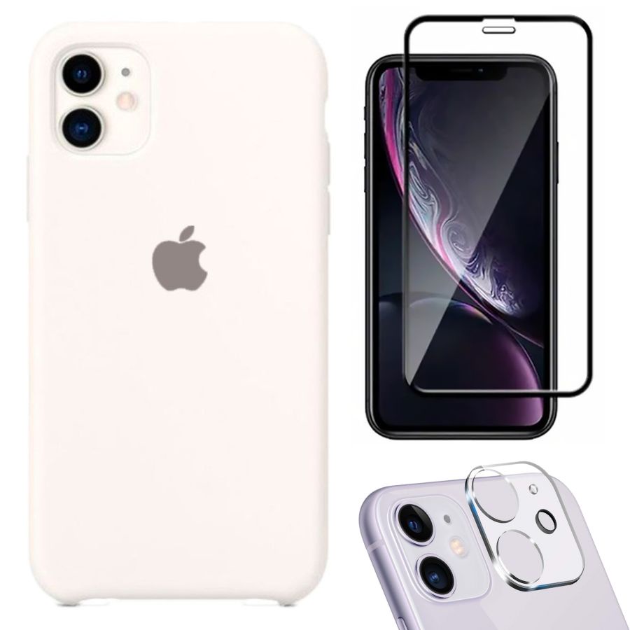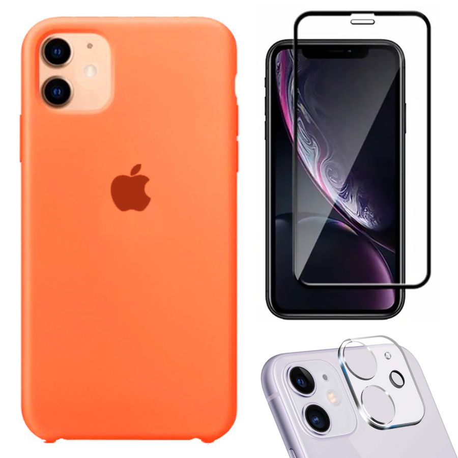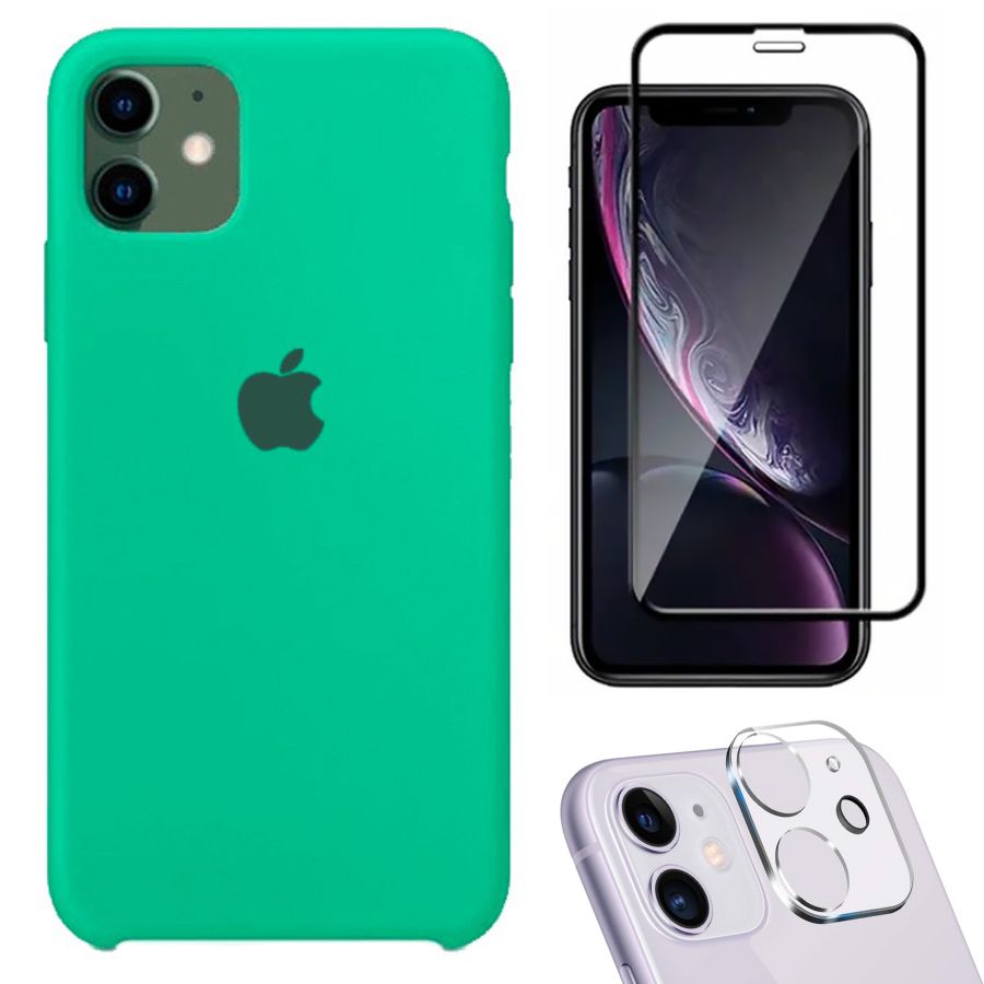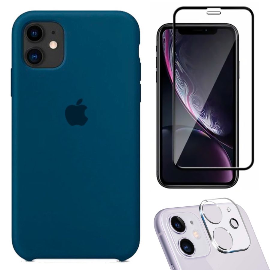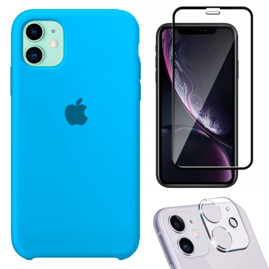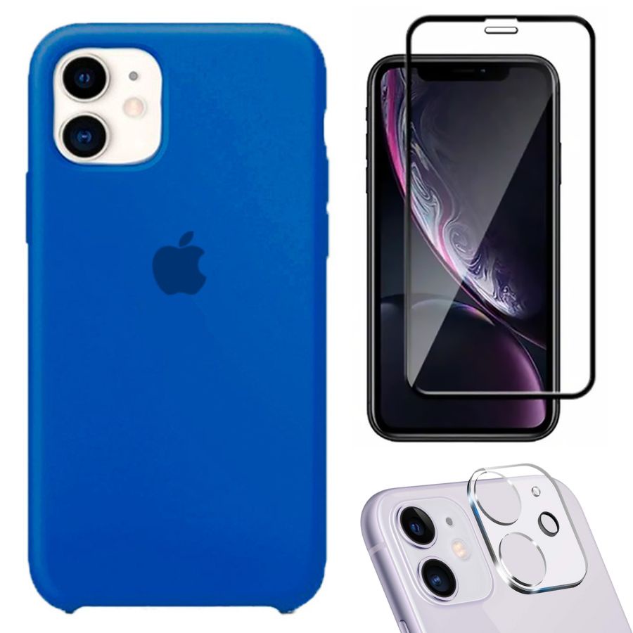 Kit 3em1 Compatível Com iPhone 11 - Capa Capinha Case + Película de Vidro 3D + Película de Câmera