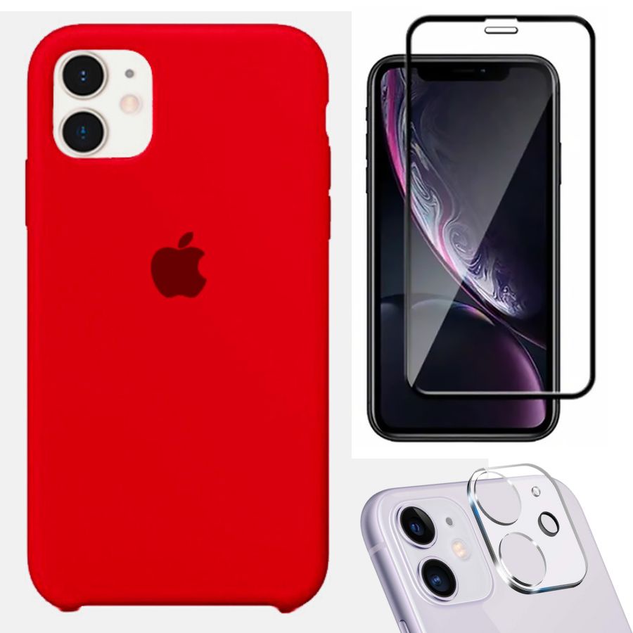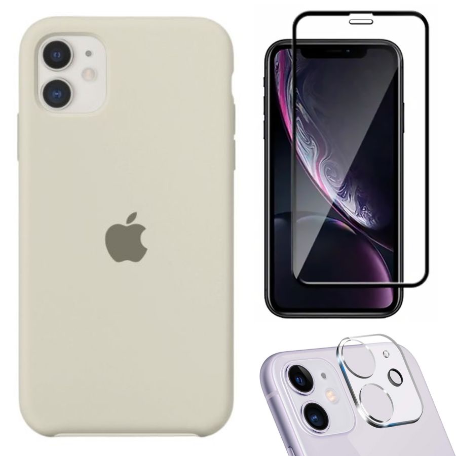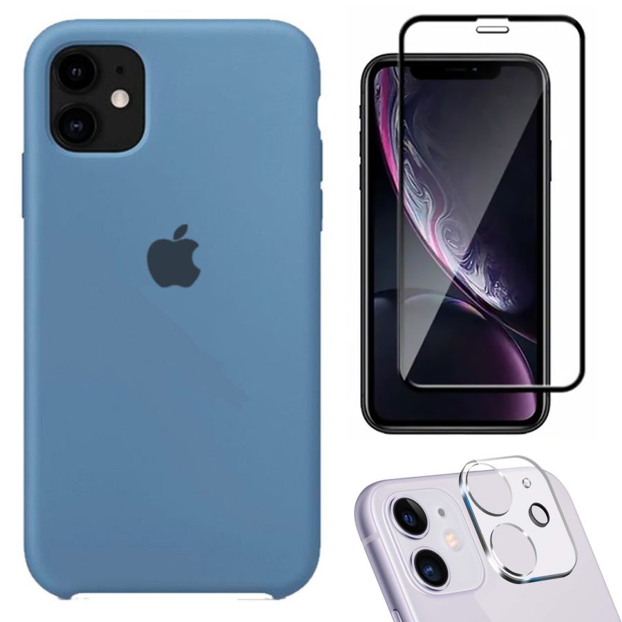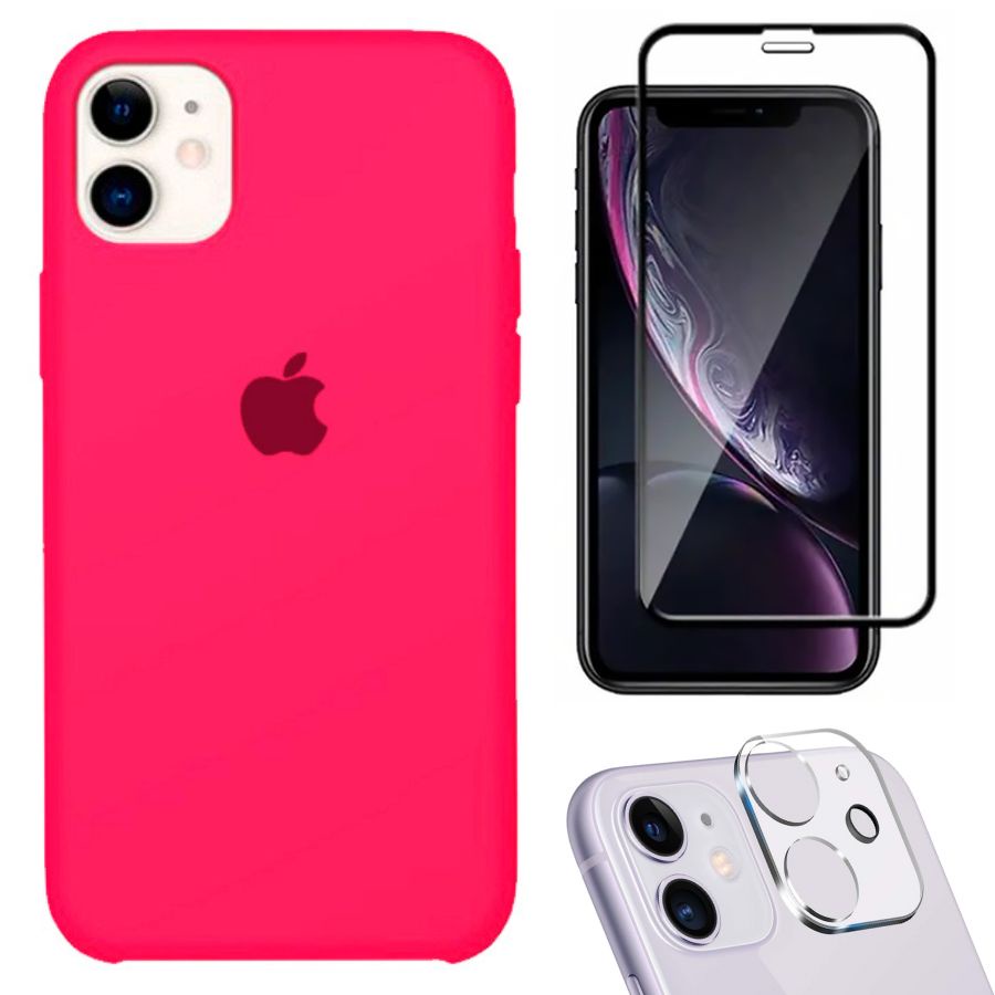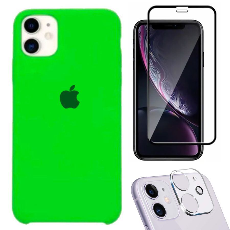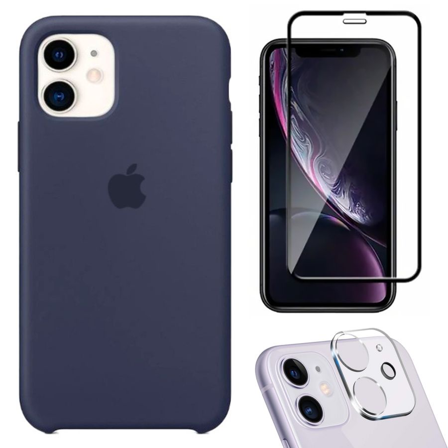Kit 3em1 Compatível Com iPhone 11 - Capa Capinha Case + Película de Vidro 3D + Película de Câmera