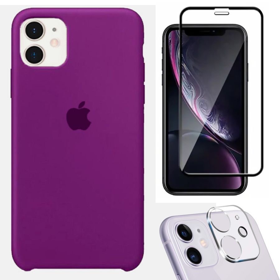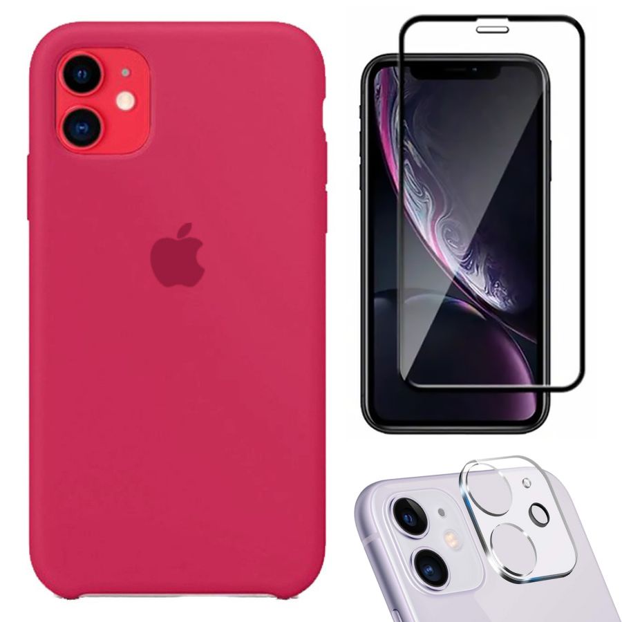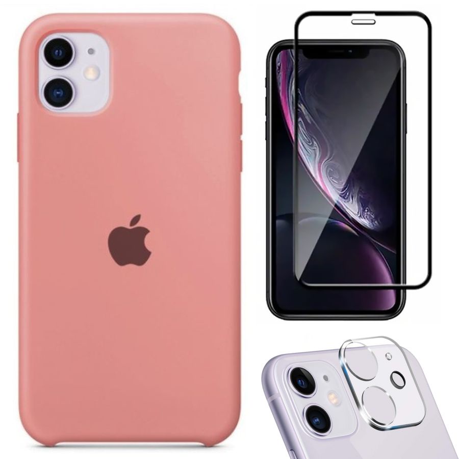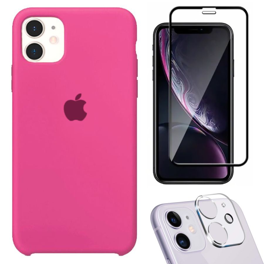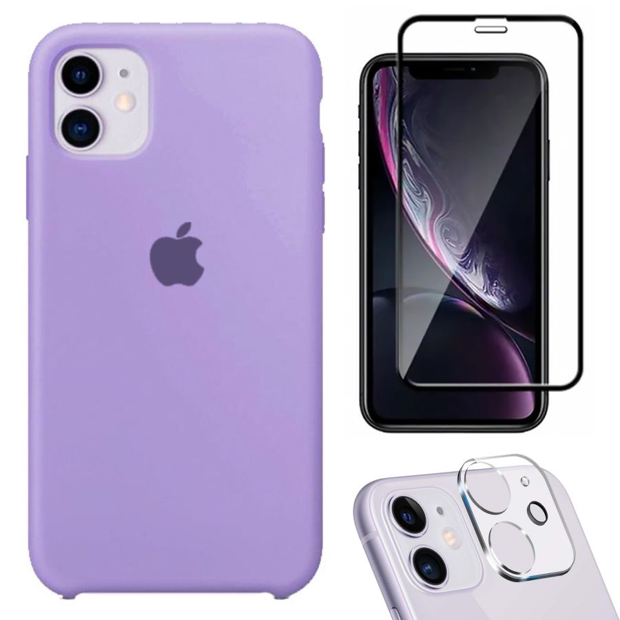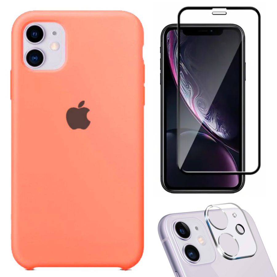 Kit 3em1 Compatível Com iPhone 11 - Capa Capinha Case + Película de Vidro 3D + Película de Câmera