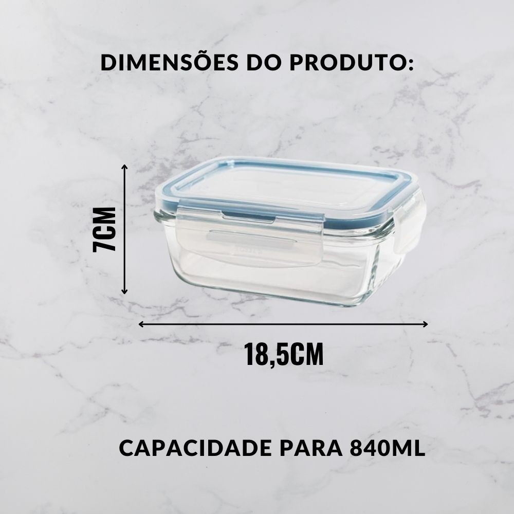 Pote de Vidro Hermético 840ml com Trava Jogo de Marmitas