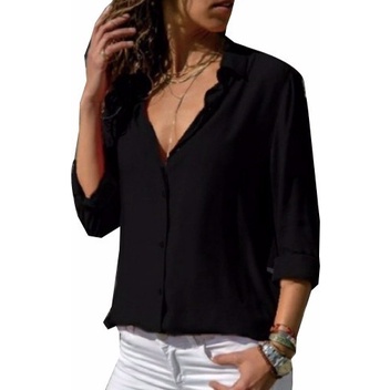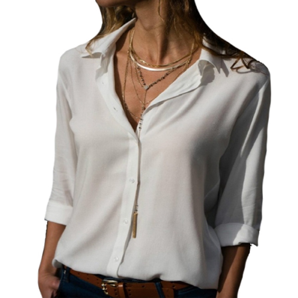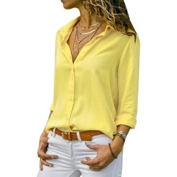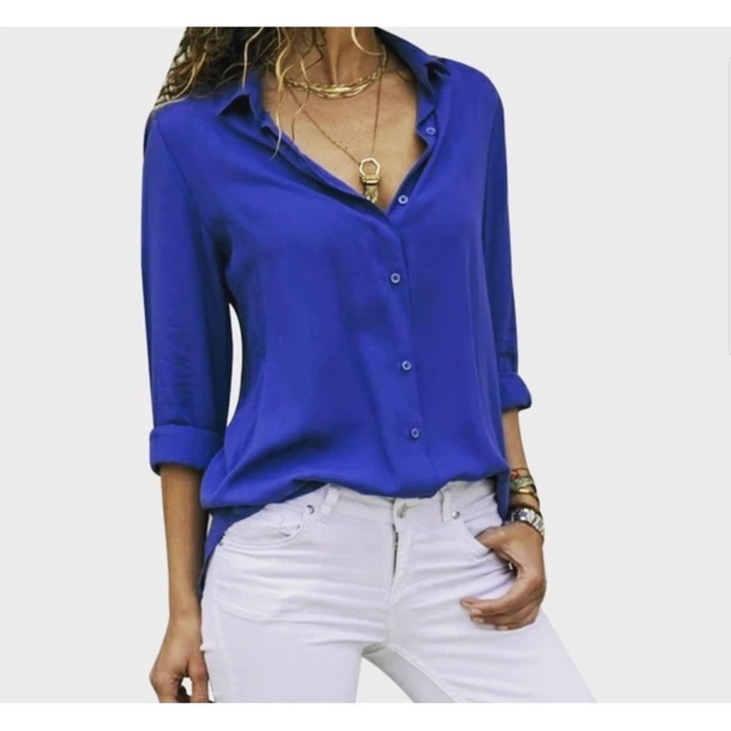 Camisa Feminina Blusa Social Camisete Manga Longa Lisa Cores Casual Viscolinho Premium Decote Em V De Botão