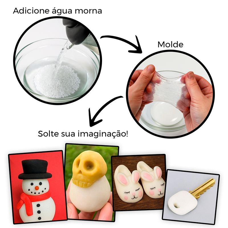Massa Resina Termoplástica PCL Moldável Reutilizável Polycaprolactona Gramas Artesanato Restauração