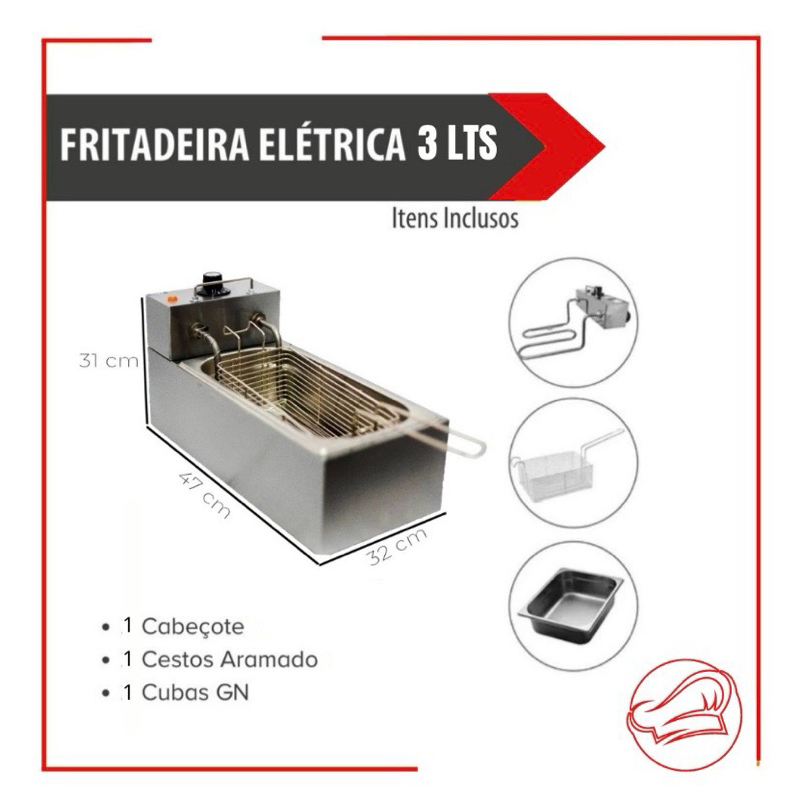 Fritadeira Elétrica 3L Cabeçote INOX óleo