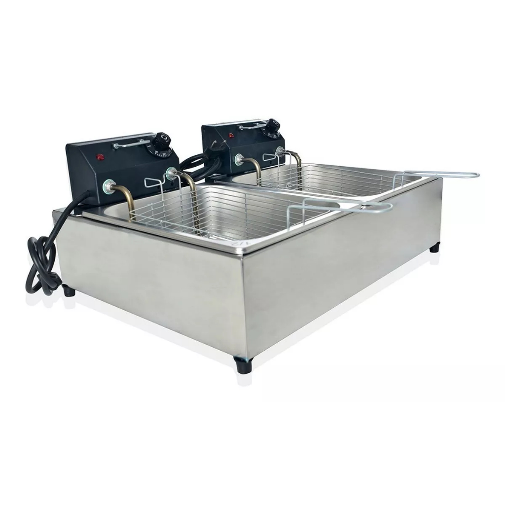 Fritadeira elétrica industrial 10 lts 2 cubas industrial aço inox