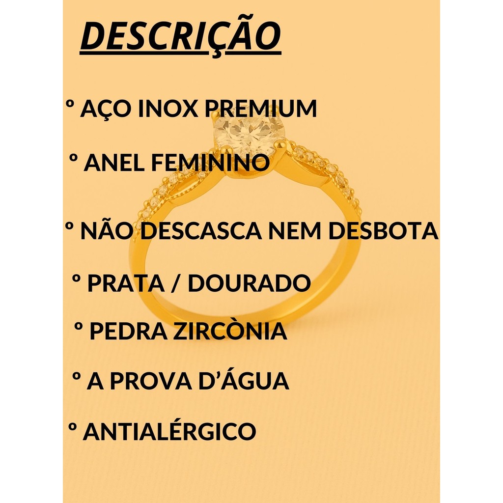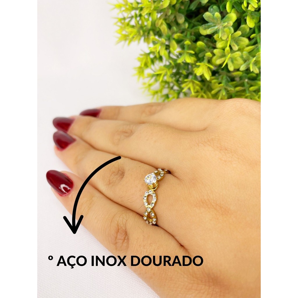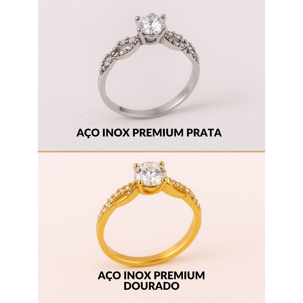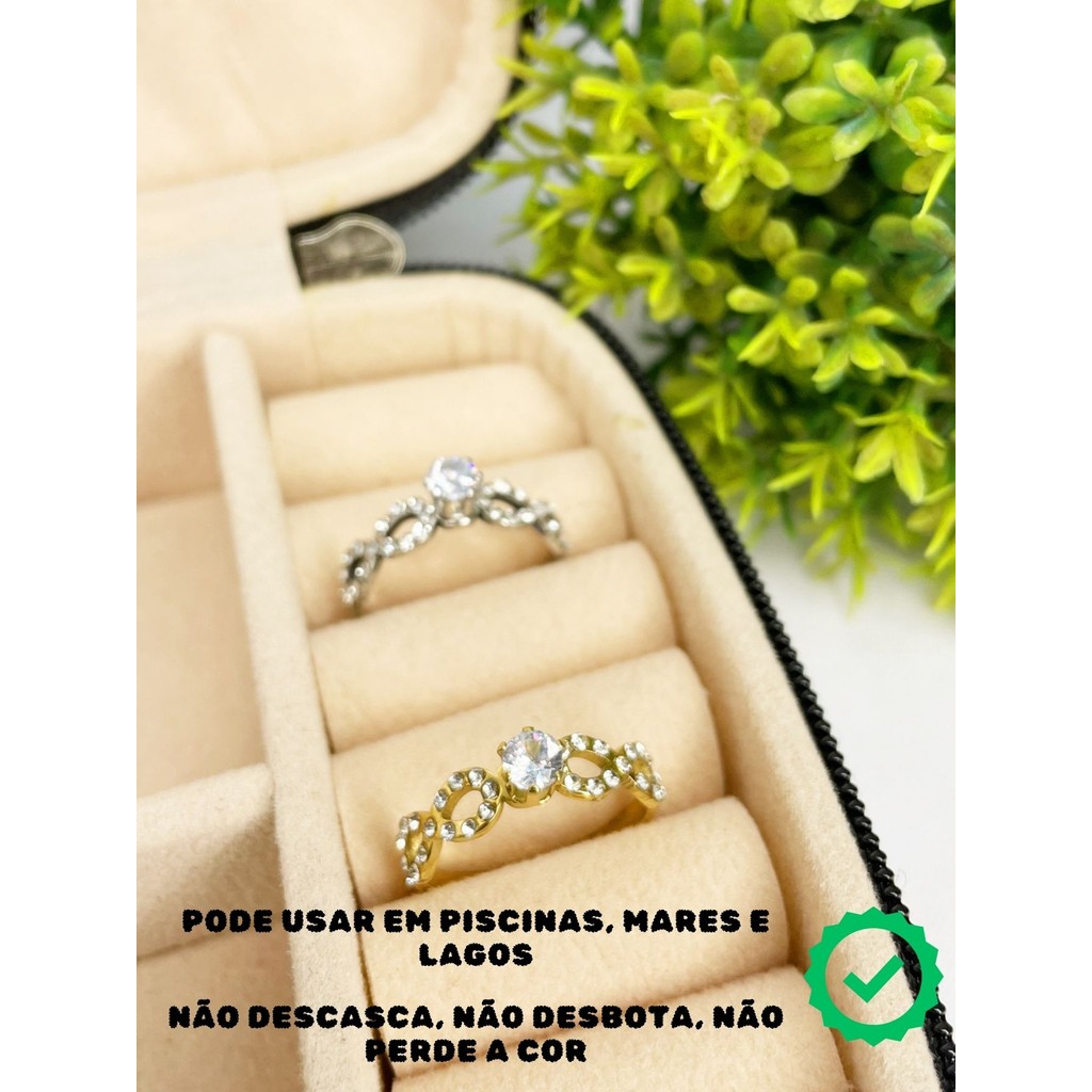 Anel Feminino Zircônia Cristal Solitário Cravejado Prata Dourado Aço Inox Falange Formatura Noivado