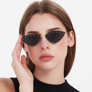 Óculos De Sol Feminino Triângulo Olho De Gato Liga Sem Aro Cristal Brilhante