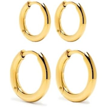 Conjunto de Brincos Argola Feminina Primeiro e Segundo Furo em Aço inoxidável 316l Antialérgico Cor Dourado ou Prata