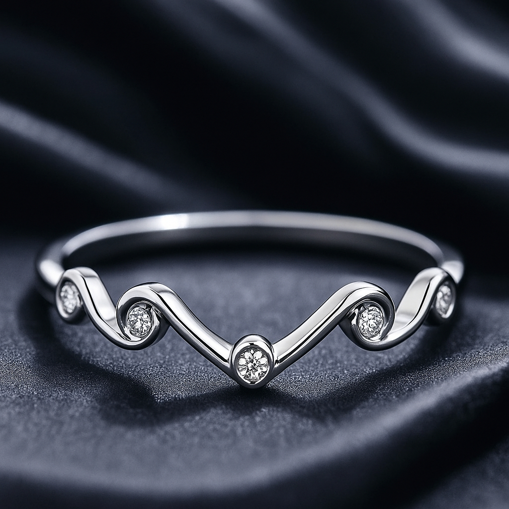 Anel Feminino Aço Inox Prateado - 316L - Design Ondas com Pedrinhas, Minimalista