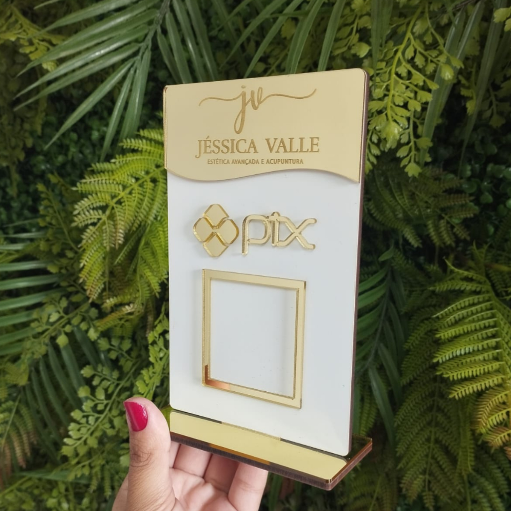 Placa Identificação Display 01 Qrcode Pix Com Logo Personalizado Mdf Acrílico Espelhado Loja