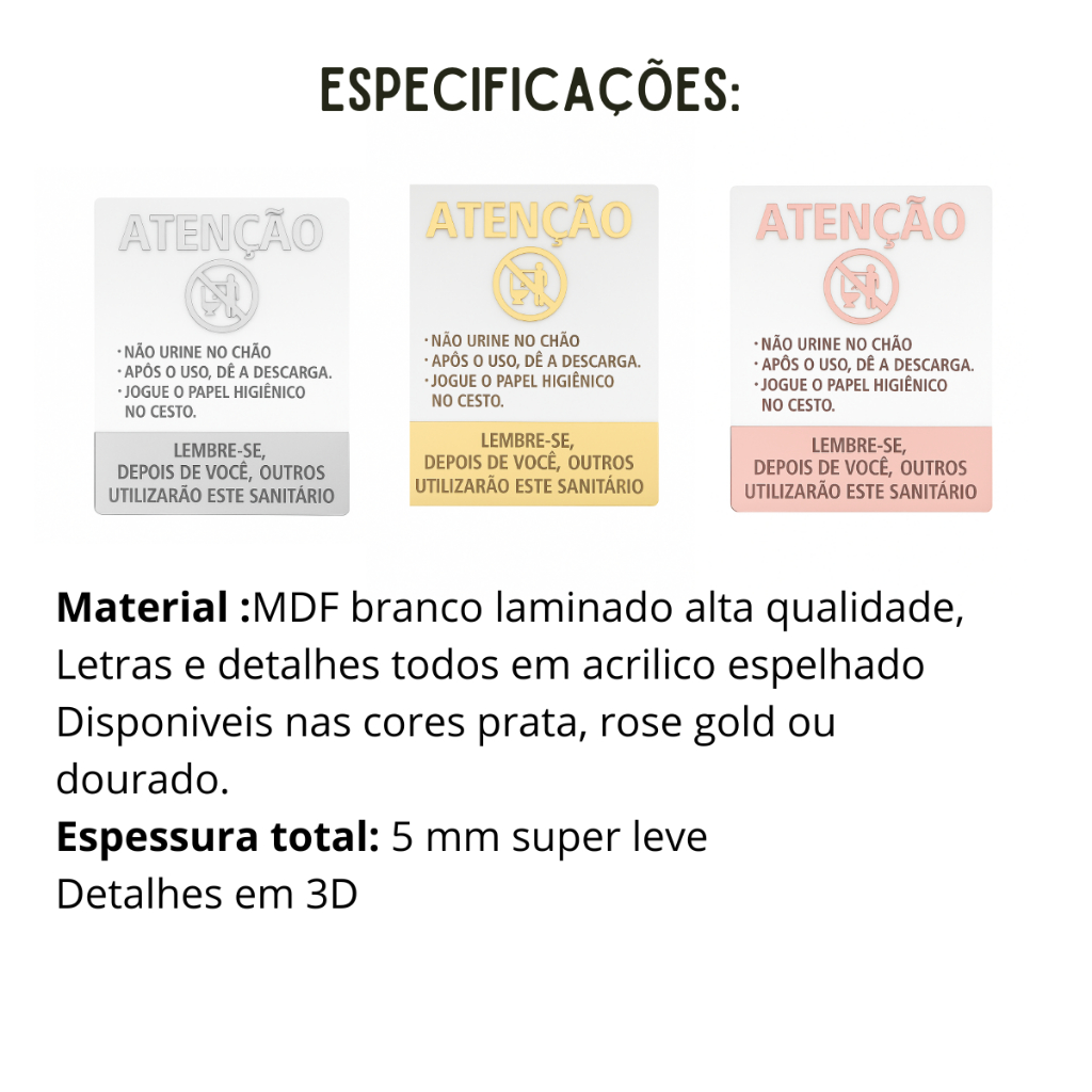 Placa de Sinalização interna Regras de Banheiro 14x18 cm
