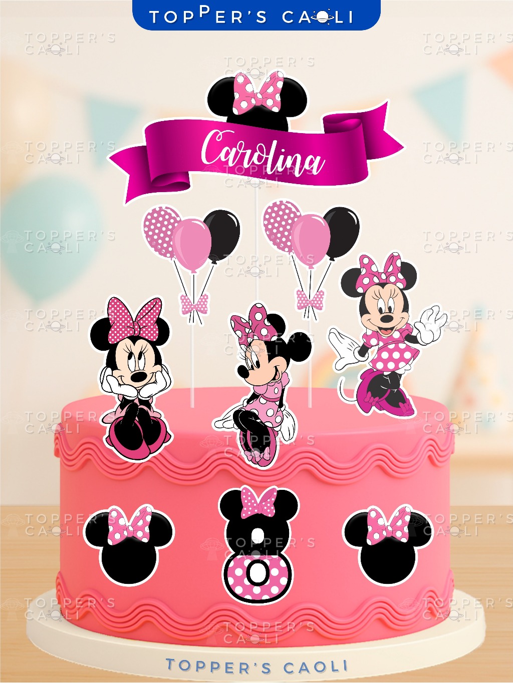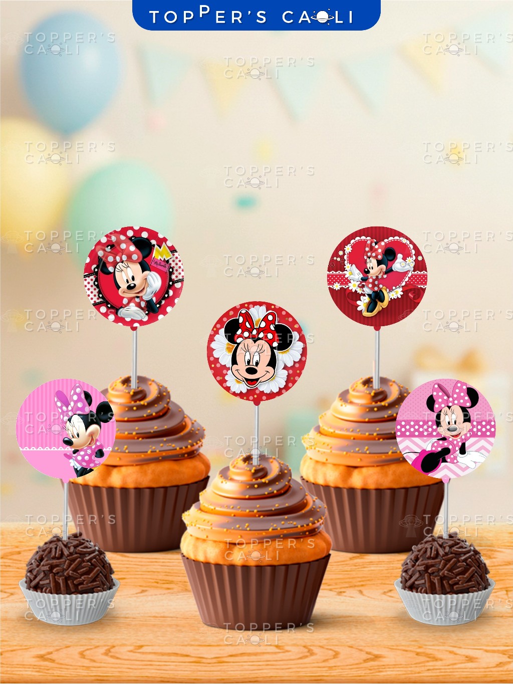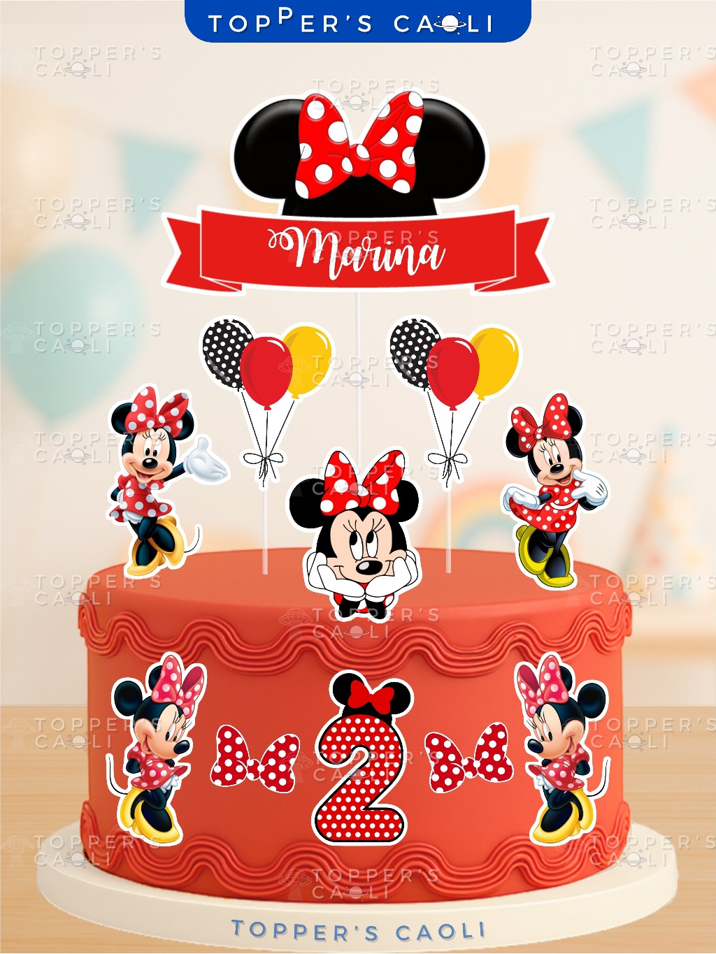 Topo de Bolo Minnie Rosa Vermelha (Topper) Decoração Festa