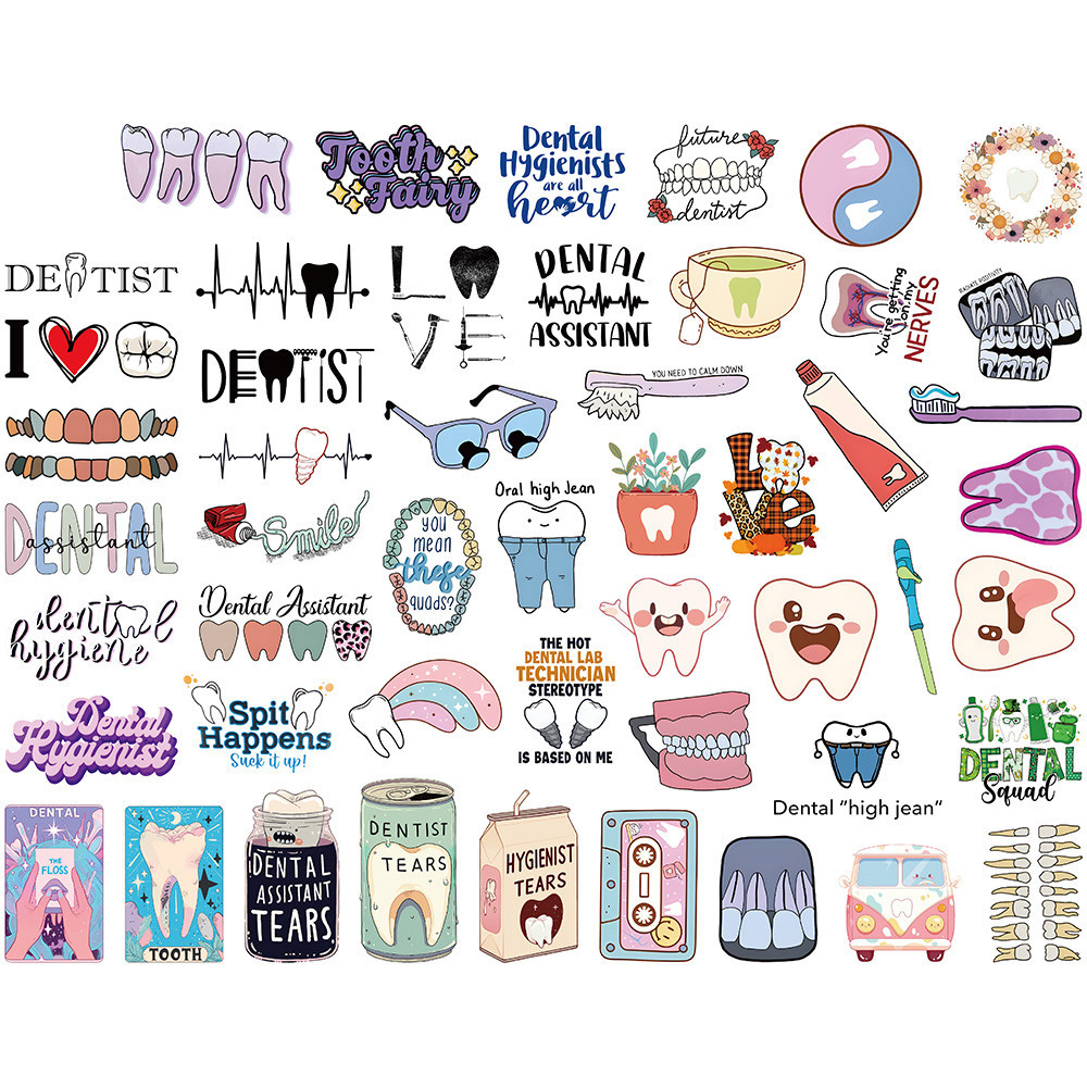 [Adesivo Grande] 50Pcs Adesivos Dentários Bonitos Proteção Dos Dentes Kids Gift Dentist Clinic Decoration Supplies for school Professores Sticker